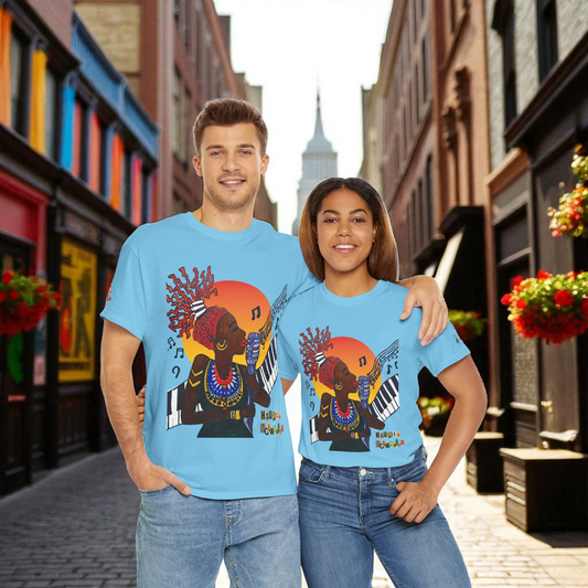 Afro Music Unisex Graphic Tee, Piano Art, Jazz Singer Shirt, Music Lover Gift
