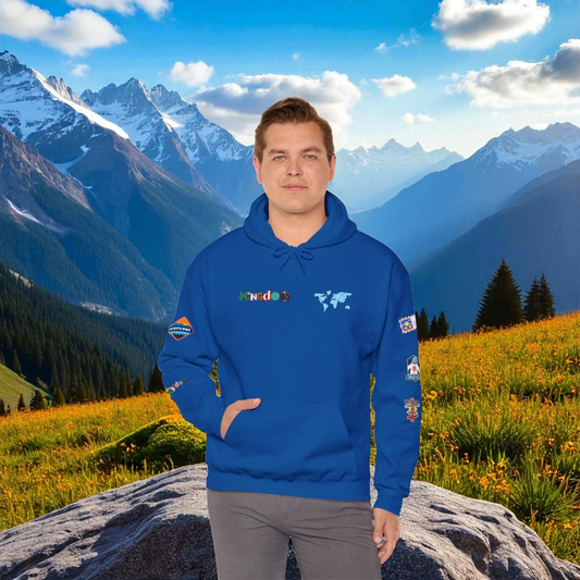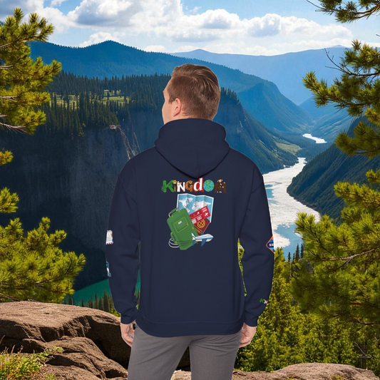 Travel Badge Graphic Hoodie, Wanderlust Sweatshirt, Vacation Inspired Pullover