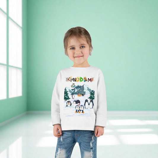 Graphic Penguin Toddler Long Sleeve Tee - Cute Animal Print Shirt for Kids, Winter Theme