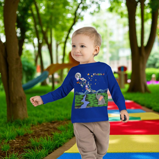 Elephant and Floral Toddler Long Sleeve Tee, Cute Animal Kids Shirt