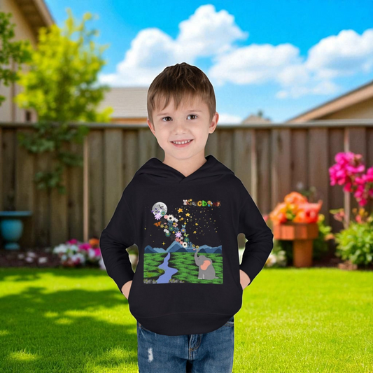Elephant & Floral Night Sky Toddler Hoodie, Wildlife Theme Pullover Fleece