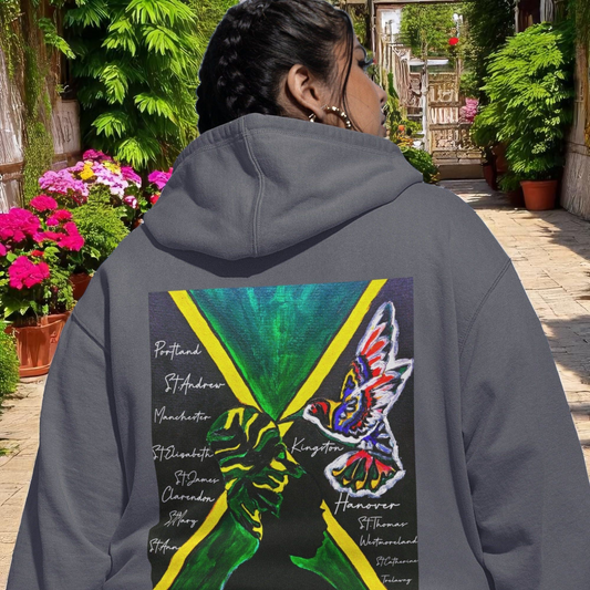 Unisex Graphic Hoodie with Hand Drawn Jamaican Flag Art , Trendy Casual Wear