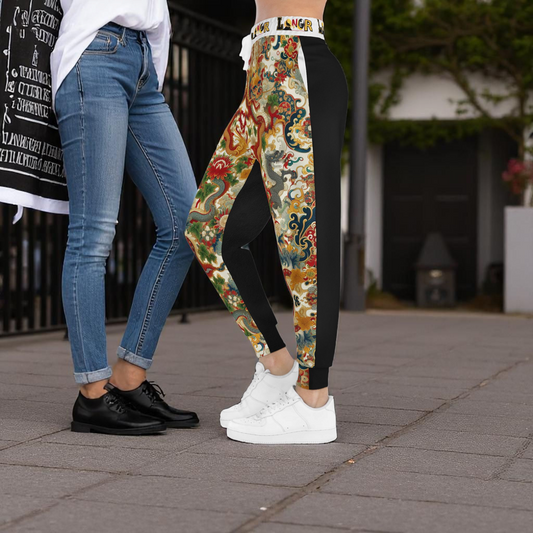 Vibrant Floral Dragon Print Athletic Joggers, Comfortable Unisex Sweatpants