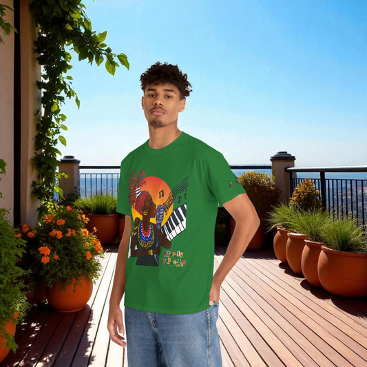 Afro Music Unisex Graphic Tee, Piano Art, Jazz Singer Shirt, Music Lover Gift