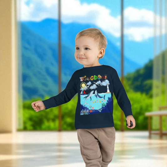 Whale Cartoon Graphic Toddler Tee, Kids Long Sleeve Shirt, Ocean Animal Children's Clothing