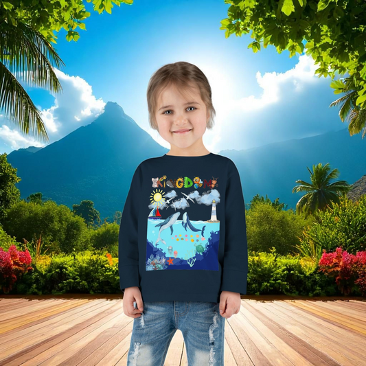 Whale Cartoon Graphic Toddler Tee, Kids Long Sleeve Shirt, Ocean Animal Children's Clothing