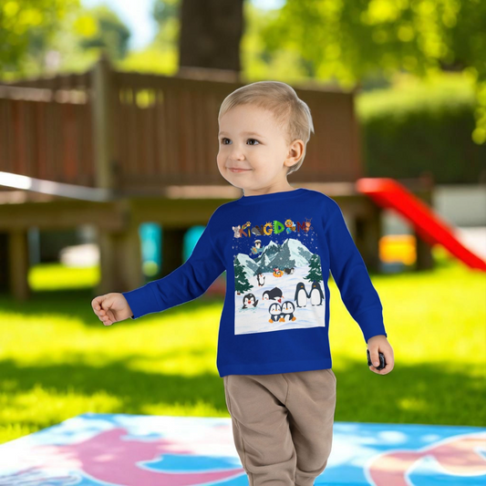 Graphic Penguin Toddler Long Sleeve Tee - Cute Animal Print Shirt for Kids, Winter Theme