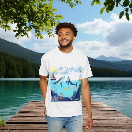 Nautical Ocean Life Whales Graphic Unisex T-Shirt, Nature Art Tee, Beachwear Shirt