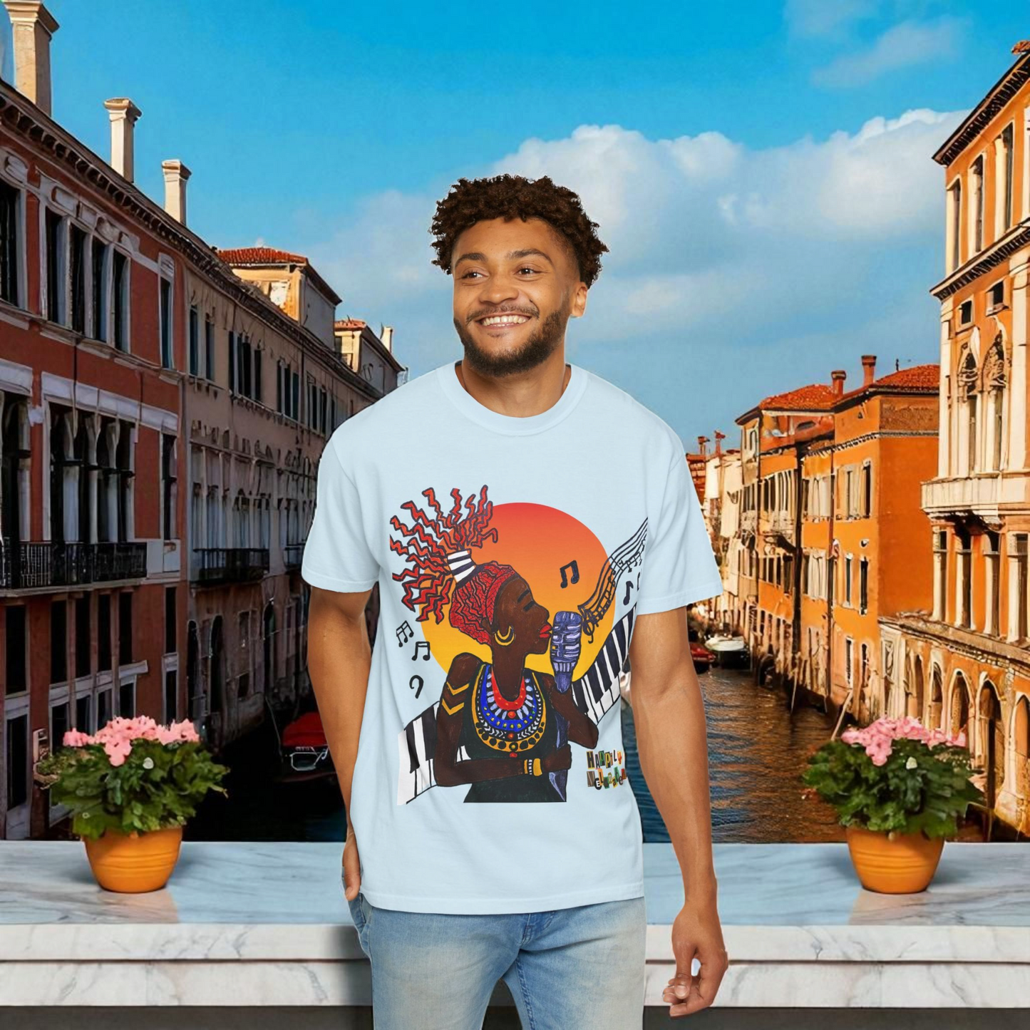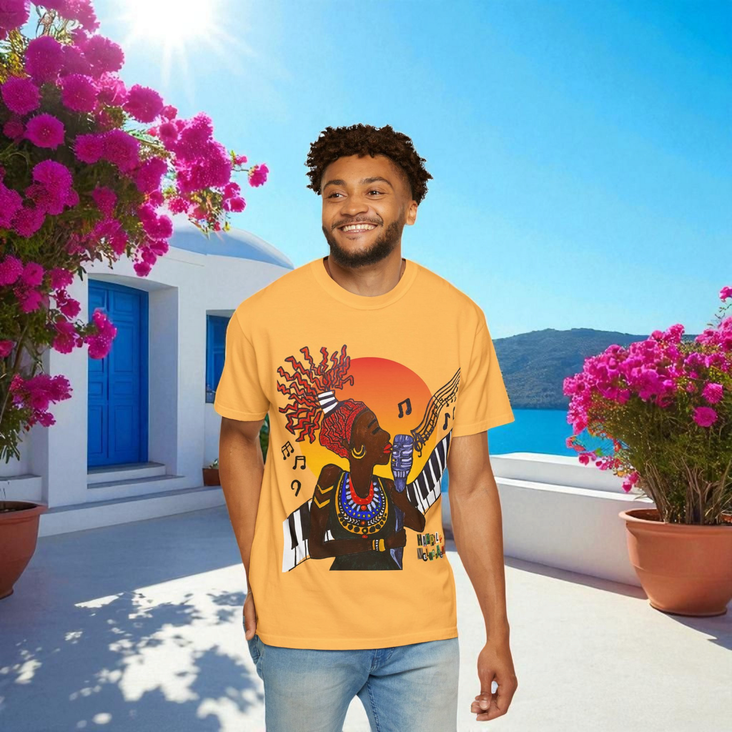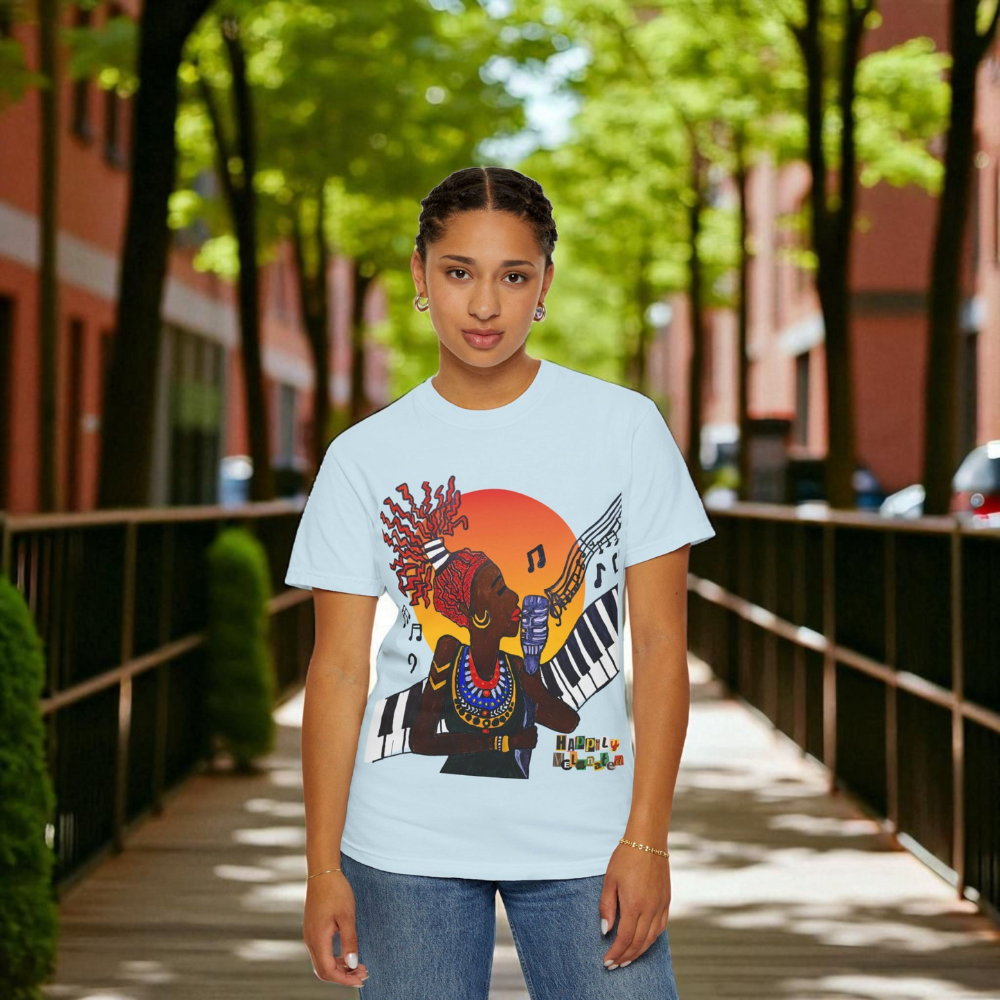 Afro Jazz Singer Graphic T-Shirt, Black History Music Tee, Unisex Garment-Dyed Shirt