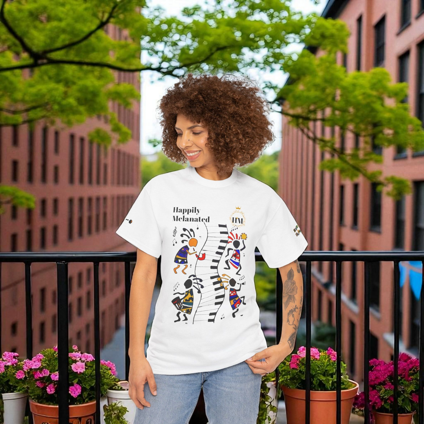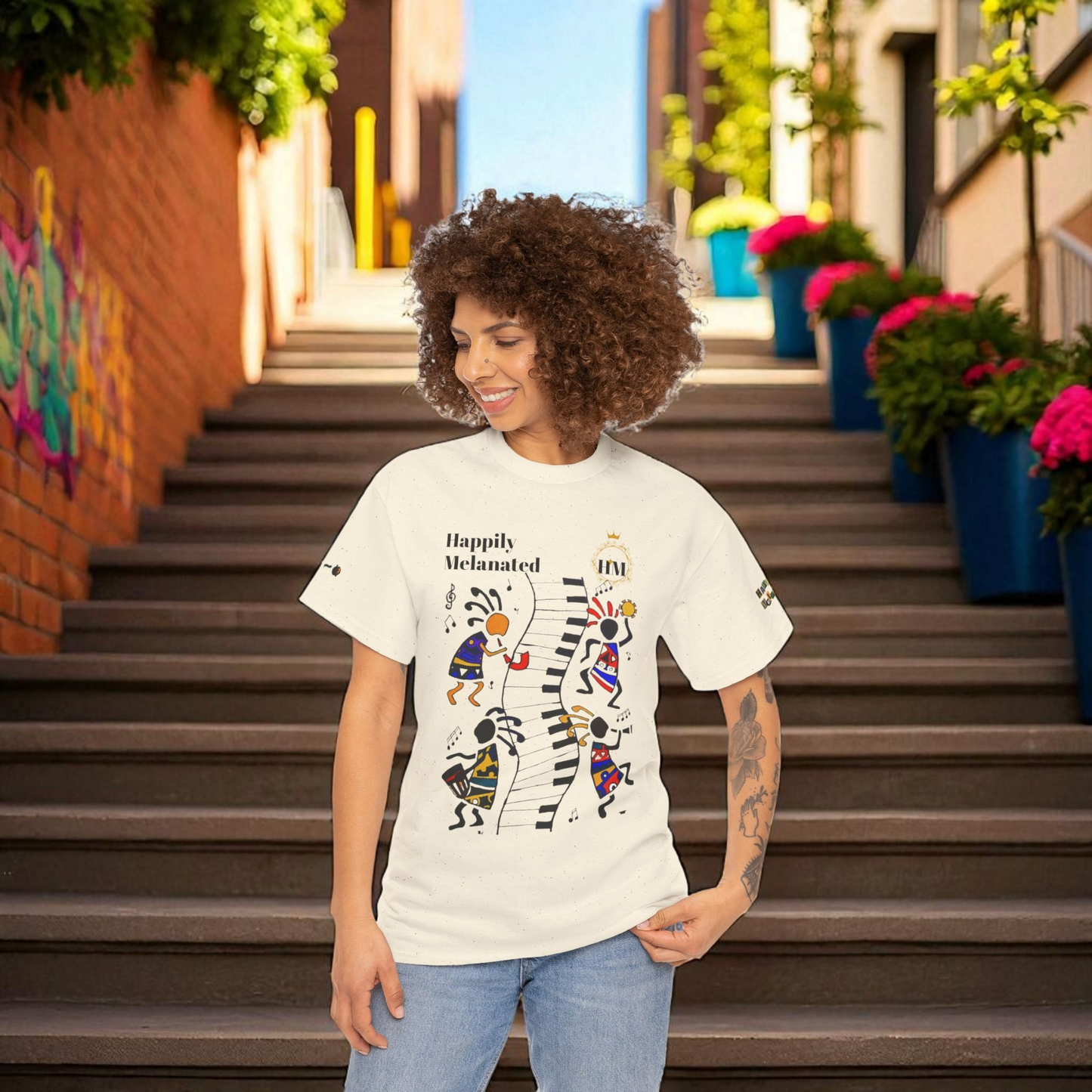 Graphic unisex t-shirt featuring a hand-drawn afro piano art design. This t-shirt exudes creativity and culture, perfect for music lovers and art enthusiasts. It can be worn casually or dressed up for a semi-formal occasion, providing comfort and style all day long. Ideal for celebrating Black History Month or attending music festivals. Product features - Shoulder tape for added stability - Knitted in one piece without side seams to reduce fabric waste - Ribbed knit collar for elasticity and shape retention - Made from strong and smooth fabric perfect for printing - Certified ethically grown and harvested US cotton Care instructions - Machine wash: warm (max 40C or 105F) - Non-chlorine: bleach as needed - Tumble dry: medium - Do not iron - Do not dryclean