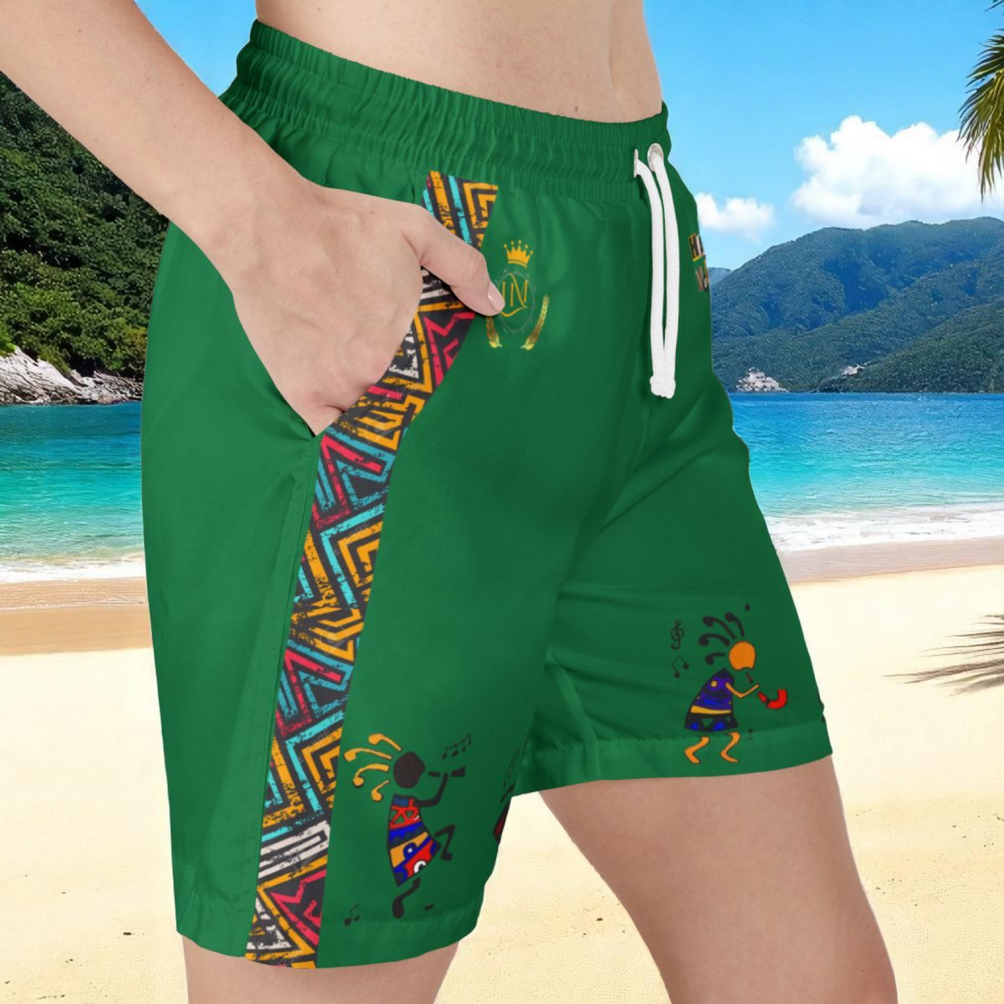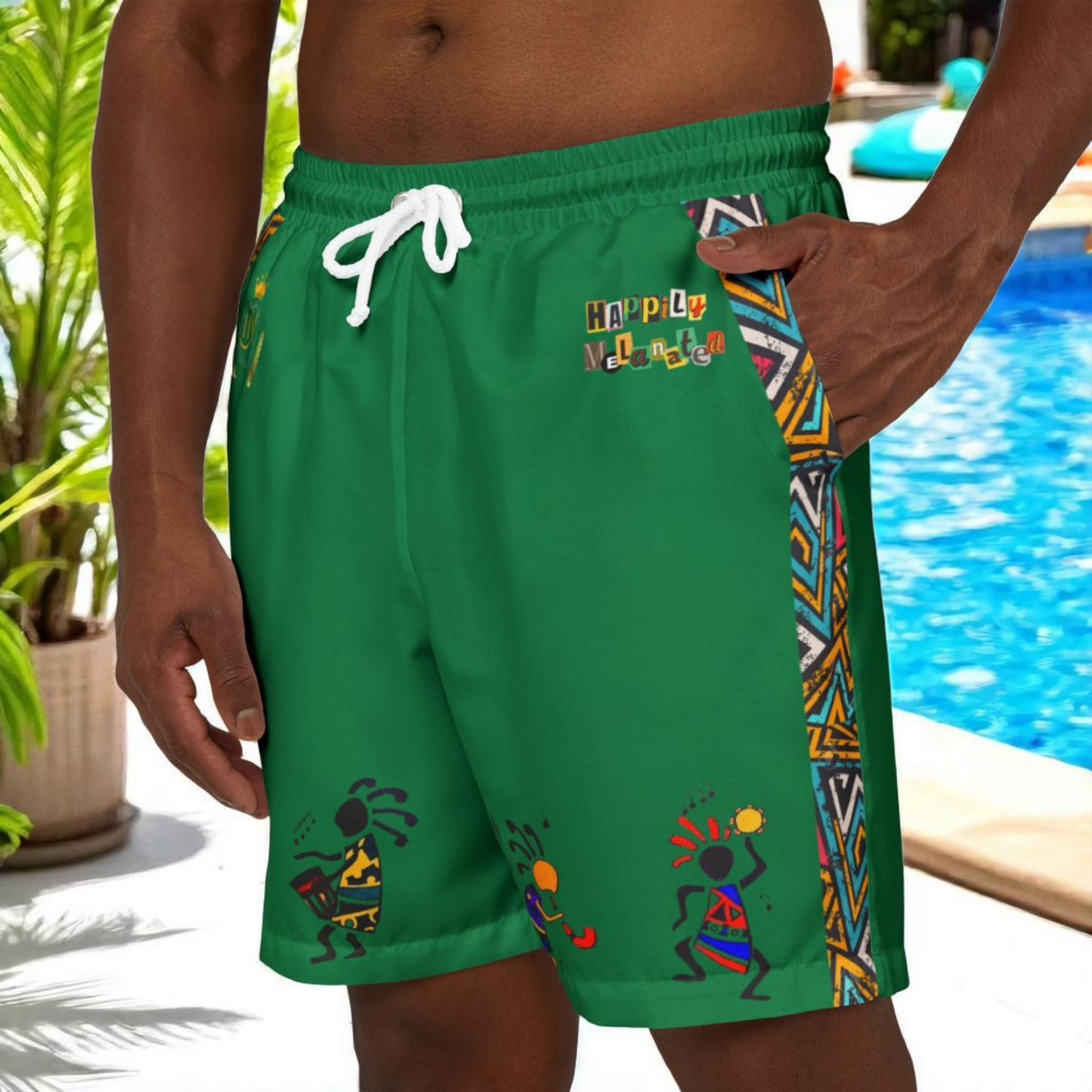 Unisex Afro Music Swim Shorts with Colorful Tribal Prints, Summer Beachwear