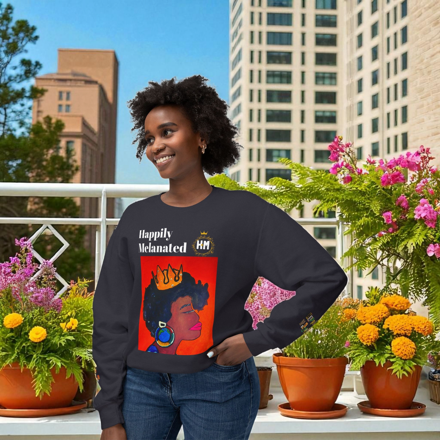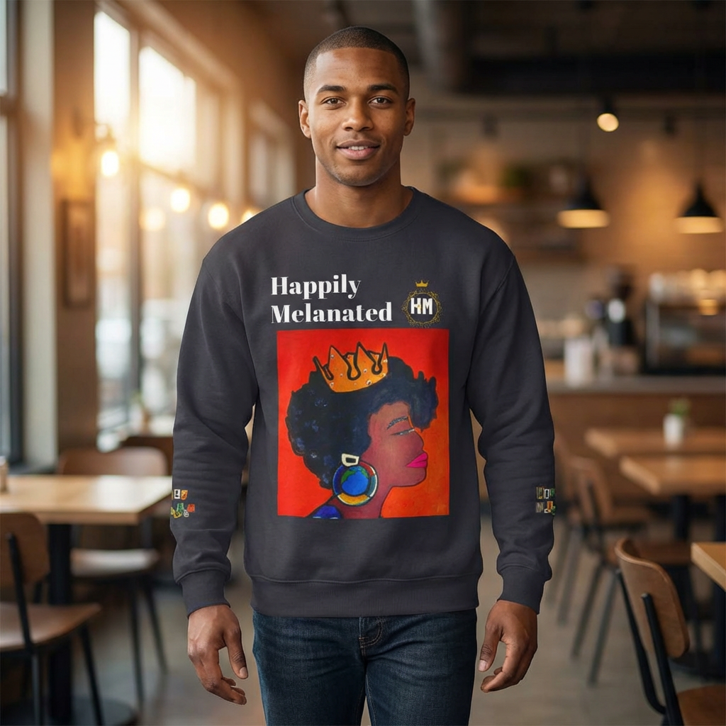 Afrocentric Graphic Unisex Lightweight Crewneck Sweatshirt, Black Art. This sweatshirt exudes cultural pride and style, perfect for those who appreciate Black art and want to showcase their heritage. Ideal for casual wear or as a statement piece during Black History Month celebrations.