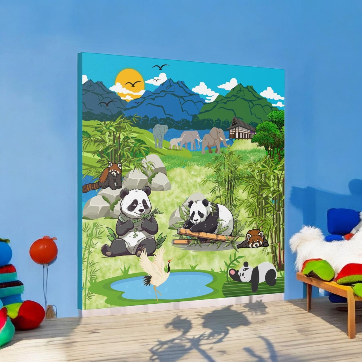 Animal Canvas, Panda and Elephant Wall Art, Nature Gallery Wrap, Asian Wildlife Print