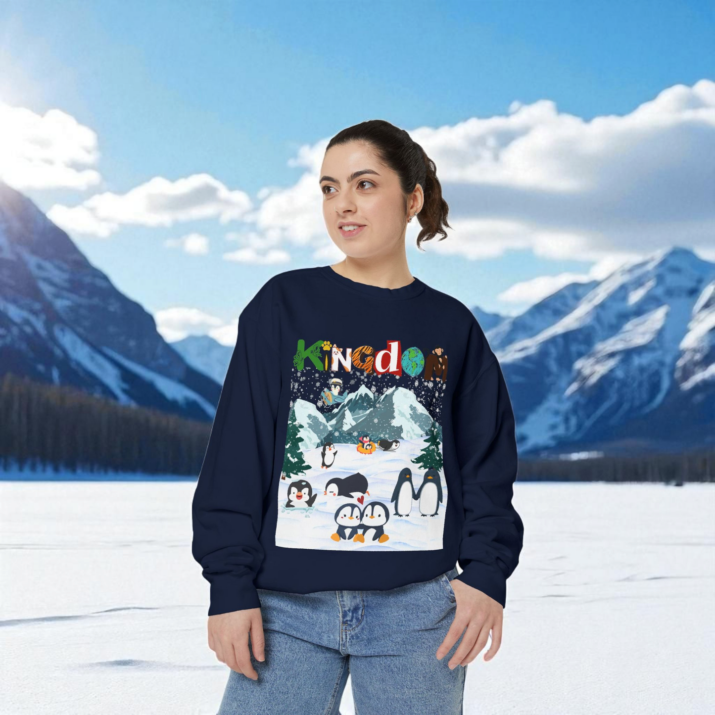 This cute Unisex Garment-Dyed Sweatshirt features adorable arctic animals like penguins in a graphic design. The sweatshirt gives a cozy and fun vibe, perfect for animal lovers or those looking for a unique winter wardrobe staple. Ideal for winter holidays, casual outings, or animal-themed events. Product features - 1x1 Ribbed collar, cuffs and bottom hem for a well-fitted garment - Necktape for added comfort and stability - Back detail with a half-moon neck patch - 80% cotton, 20% polyester fabric for a soft and luxurious feel - Embroidery decoration available on left chest Care instructions - Machine wash: cold (max 30C or 90F) - Non-chlorine: bleach as needed - Tumble dry: low heat - Do not iron - Do not dryclean