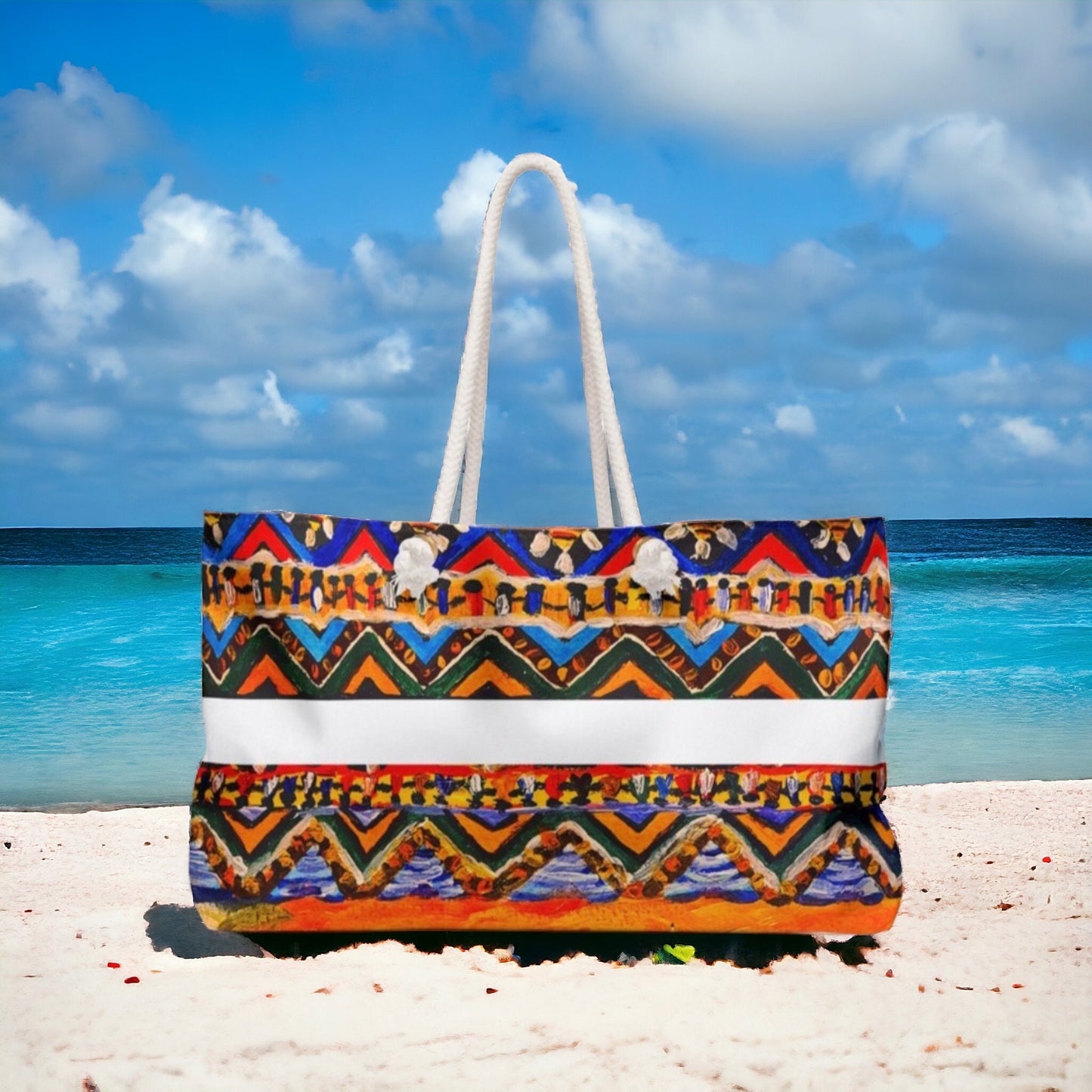 Artisan Aztec Textile Weekender Bag - Oversized, Durable Tote with Rope Handles