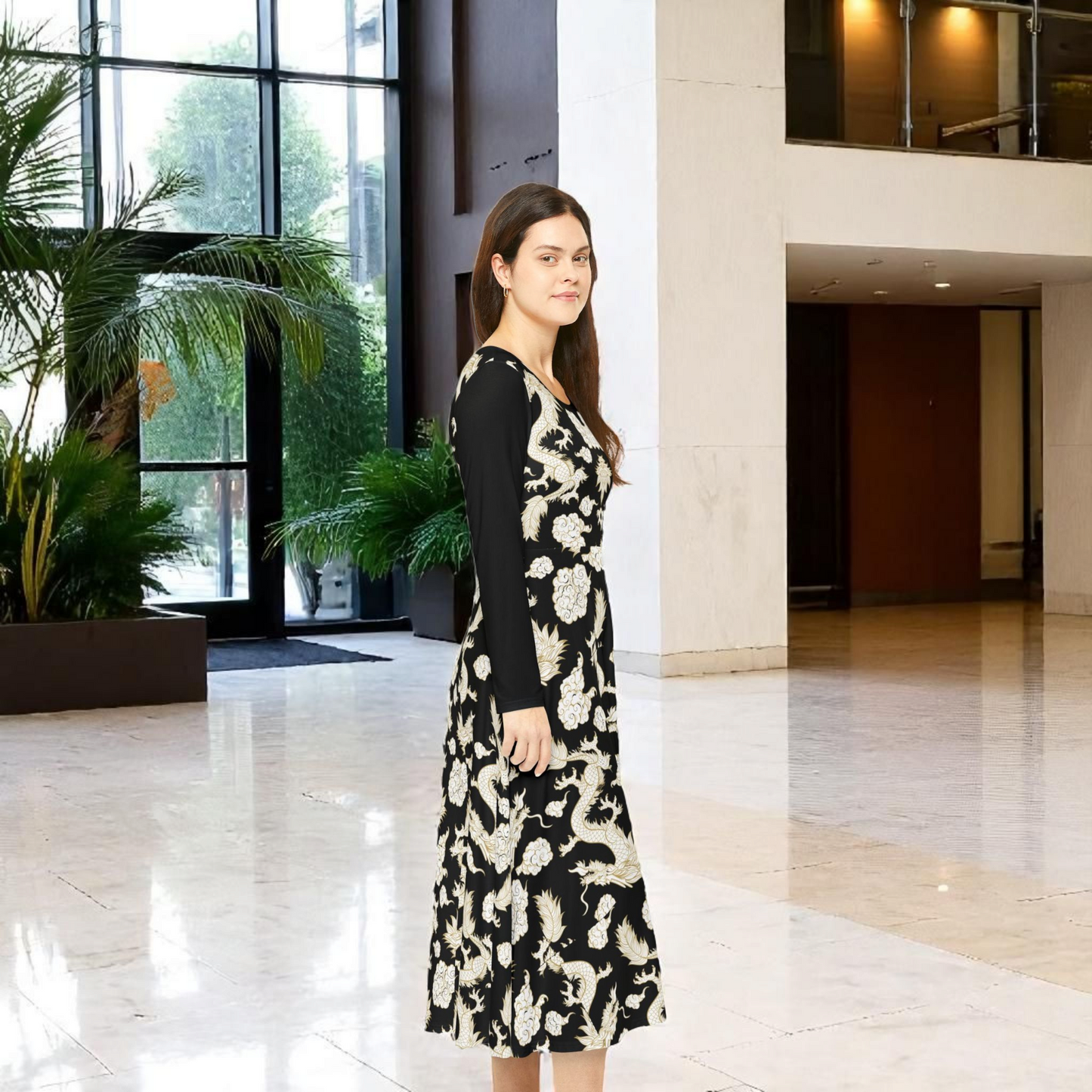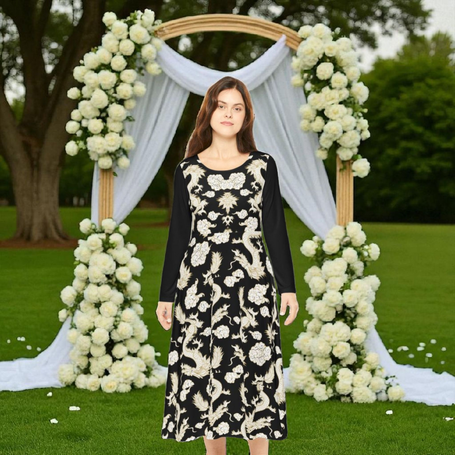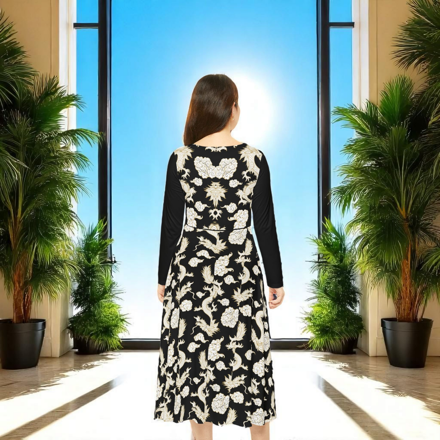 Beautiful Dragon Long Sleeve Dance Dress | Boho Style, Dance Wear, Vintage Inspired, Garden Party Dress, Mother’s Day Gift