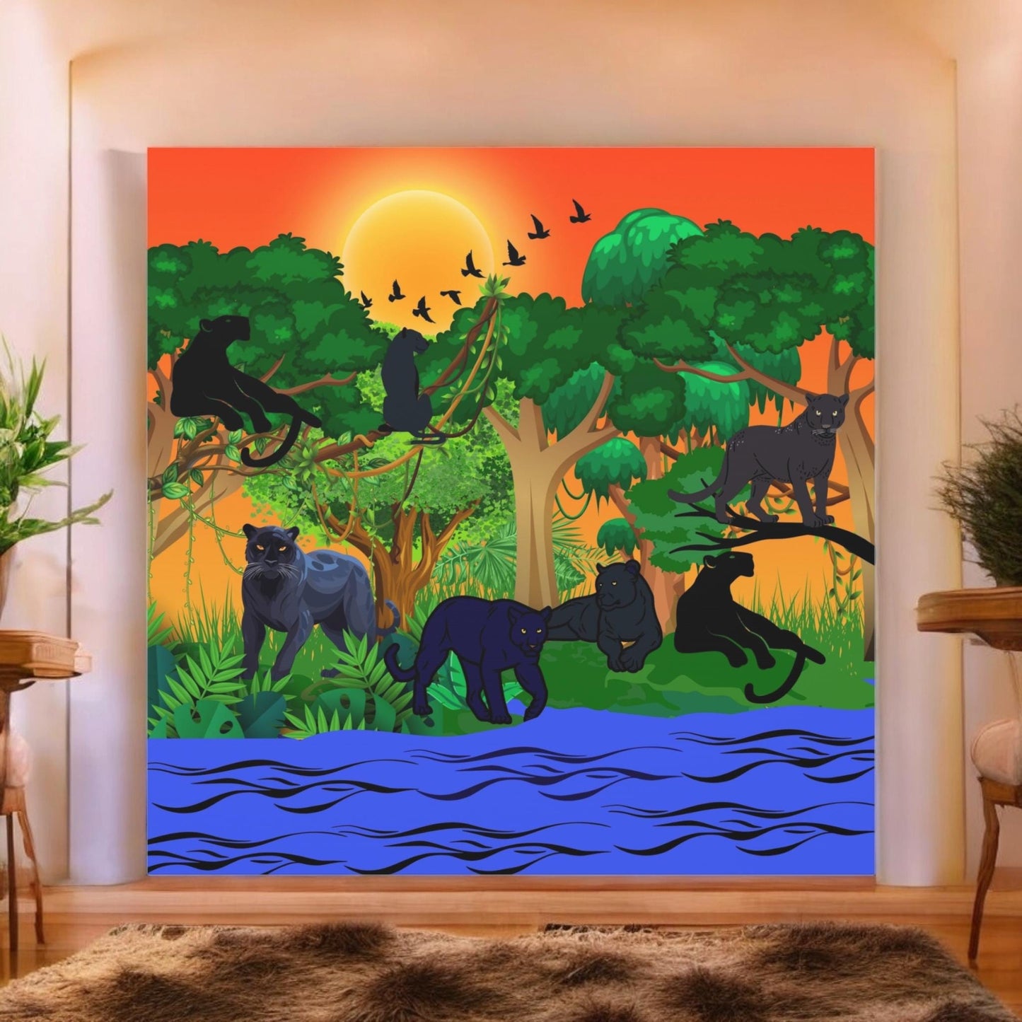 Vibrant Blank Panther Wall Art Canvas that adds a touch of elegance and sophistication to any room. Perfect for art enthusiasts and home decor enthusiasts. Ideal for showcasing during Black History Month, cultural celebrations, or as a statement piece year-round.