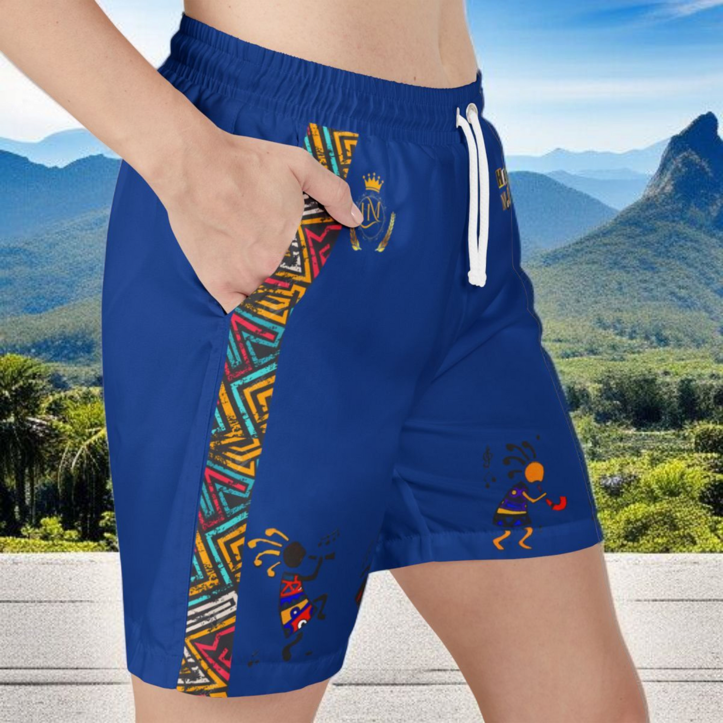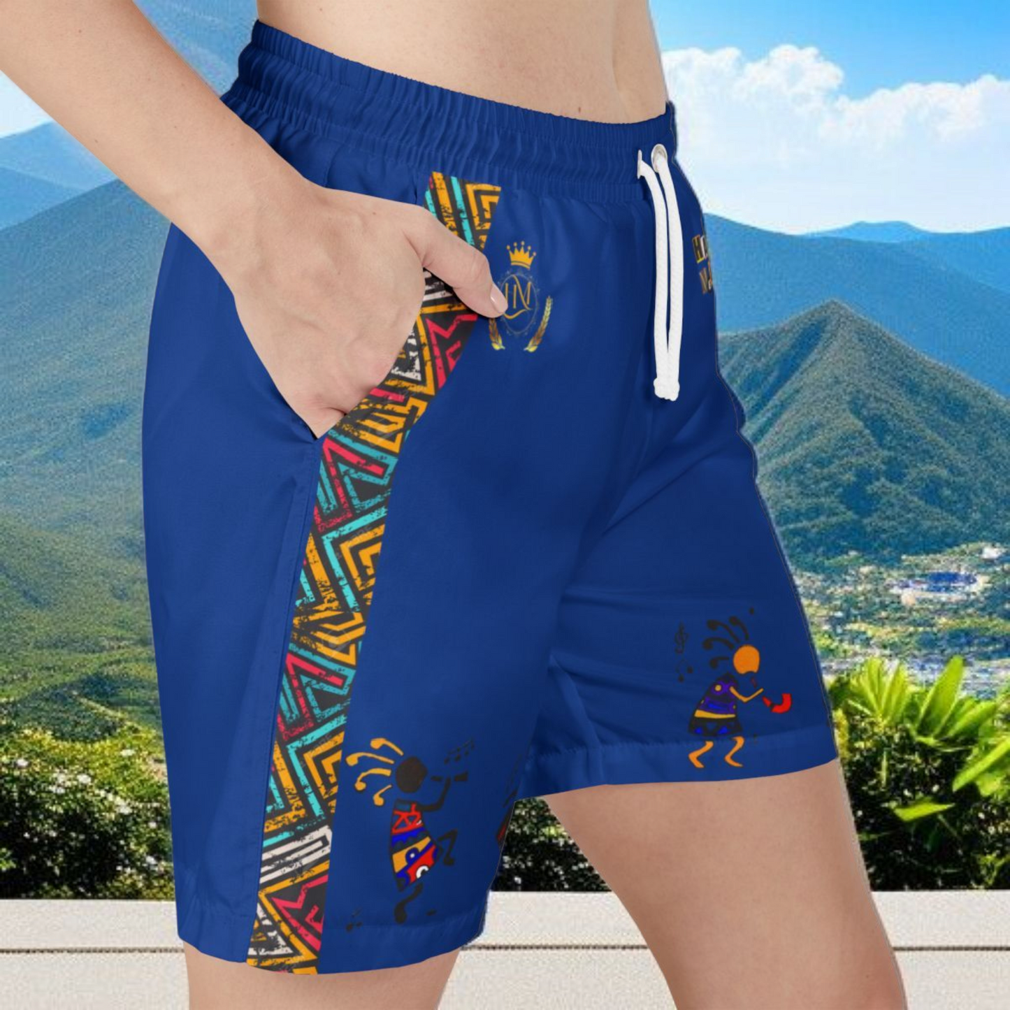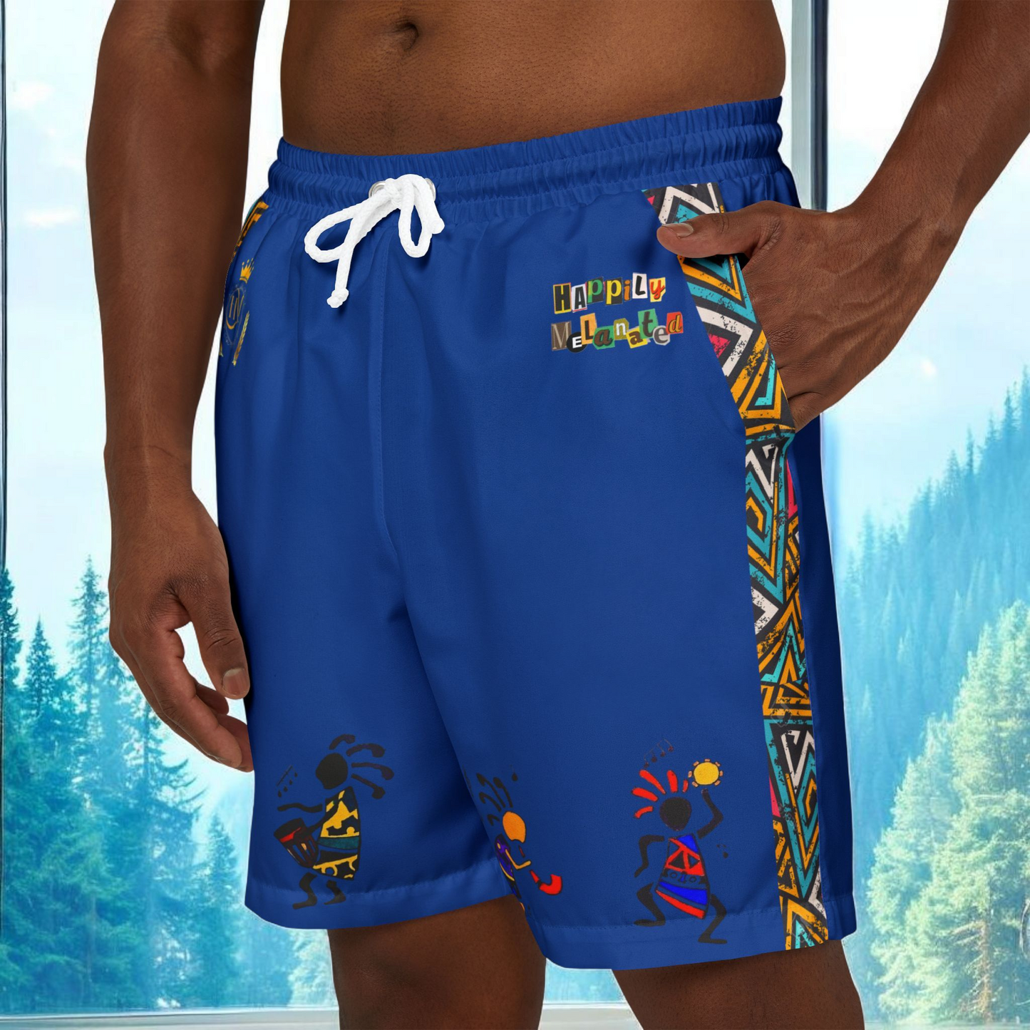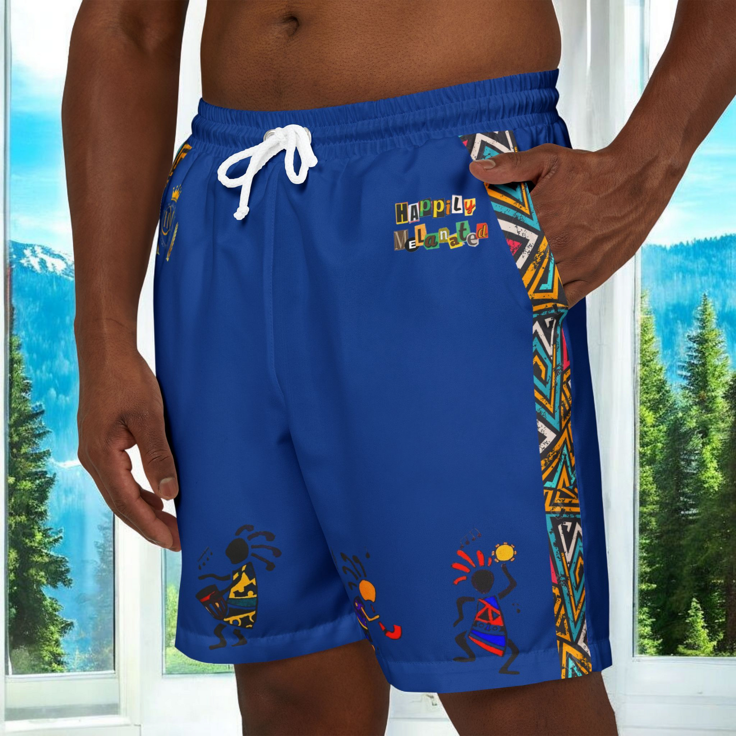 Unisex Boho Swim Shorts with Colorful Tribal Prints, Summer Beachwear