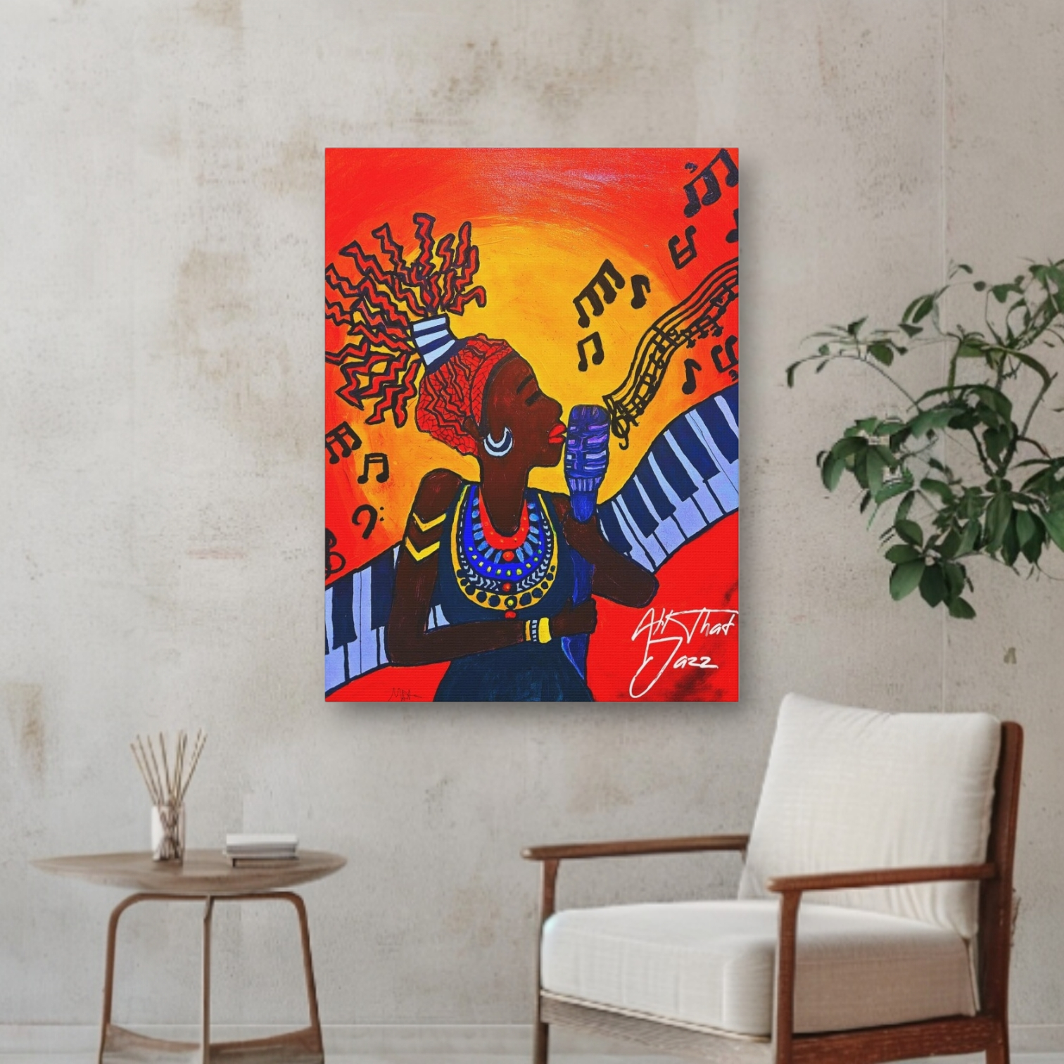 Canvas Art Print, Jazz Singer Music Decor, Jazz Piano Wall Art, Original Artwork
