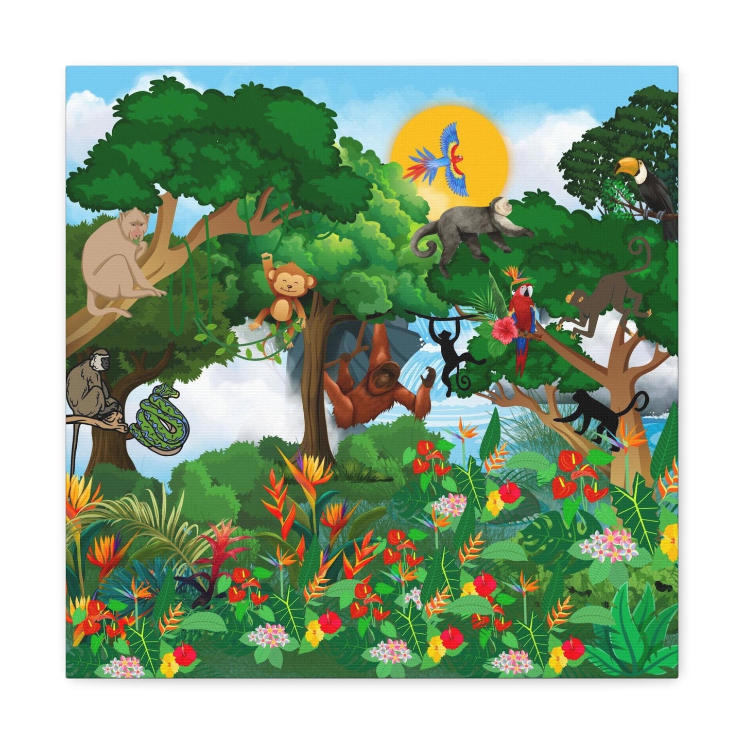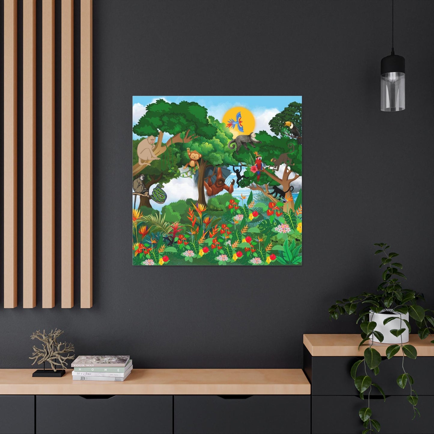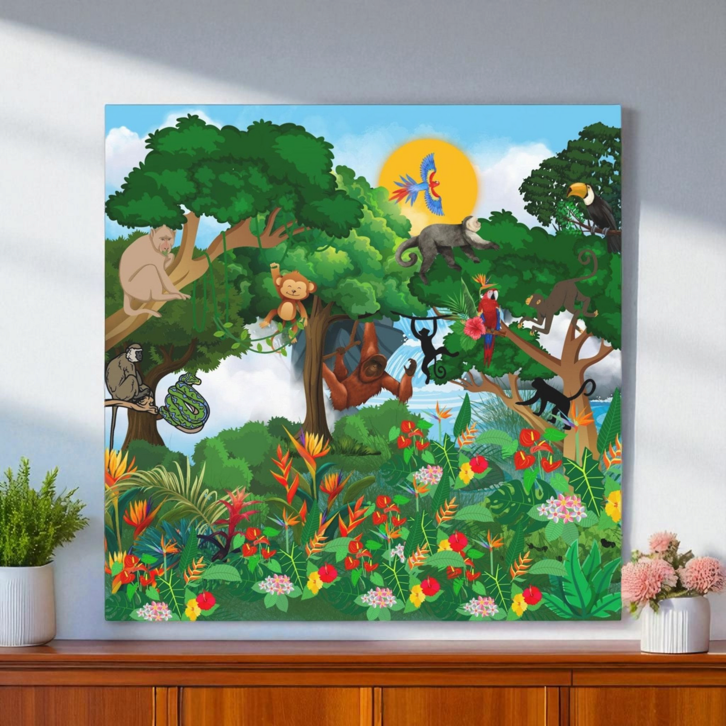 Transform your space with this vibrant Jungle animal themed Canvas Wrap featuring playful Monkeys. Perfect for animal lovers and those looking to add a touch of nature to their home decor. Ideal for gifting on birthdays, housewarmings, or as a special treat for yourself.