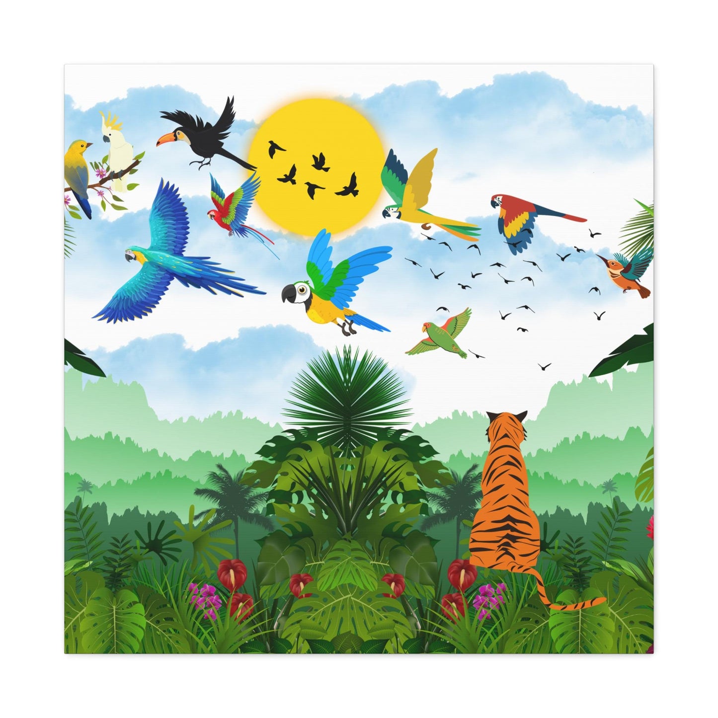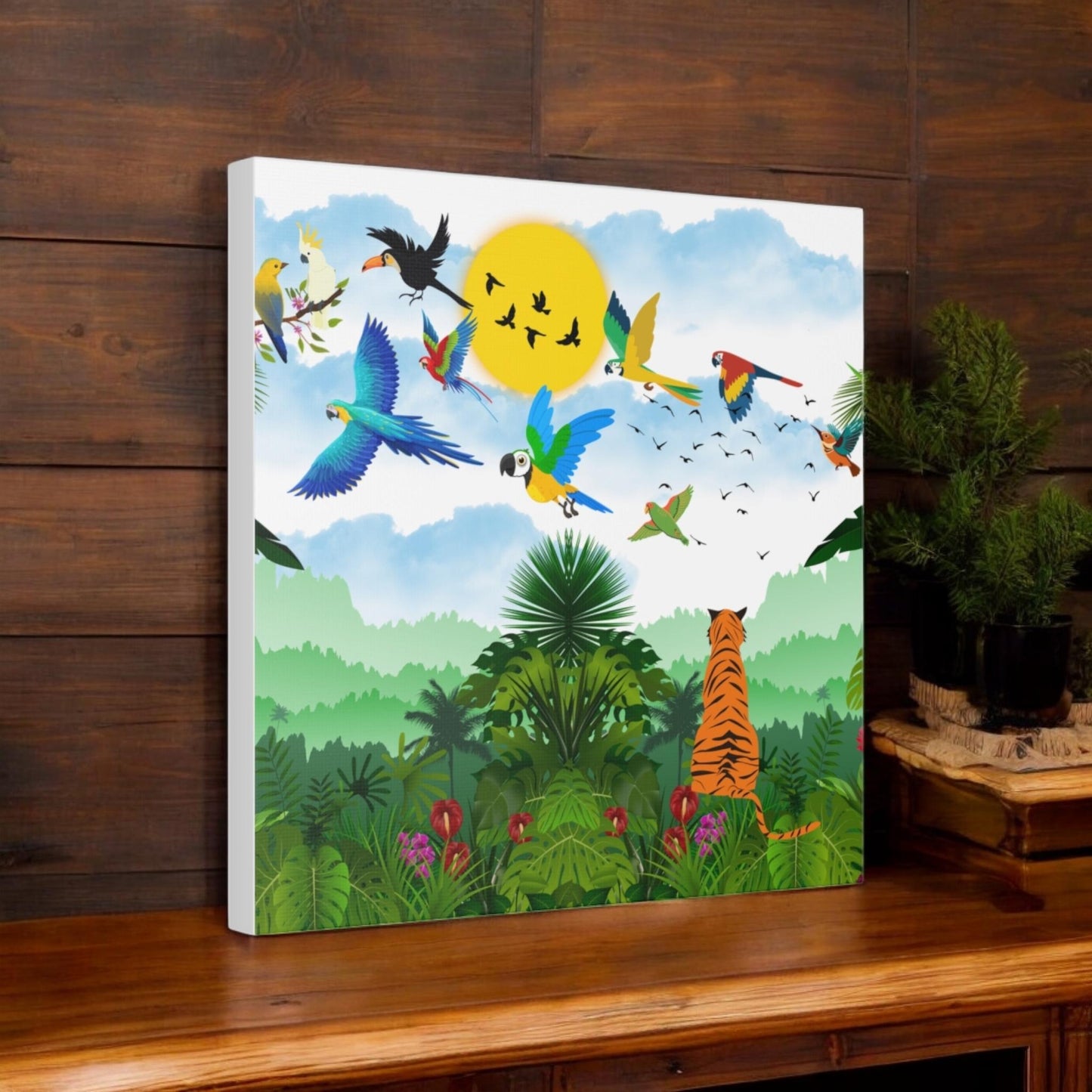 Canvas Gallery Wraps, Tropical Bird Jungle Art Tiger Wall Art, Wall Decor, Wildlife Home Decor