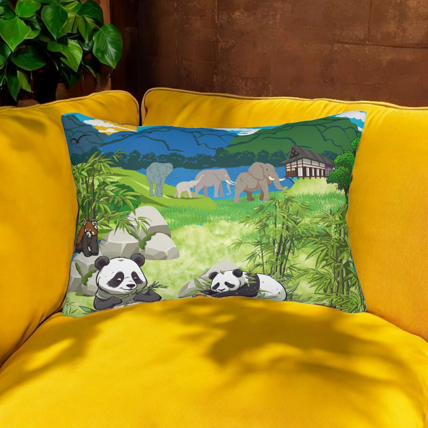 Cozy Wildlife Lumbar Pillow - Nature-Inspired Panda & Elephant Design