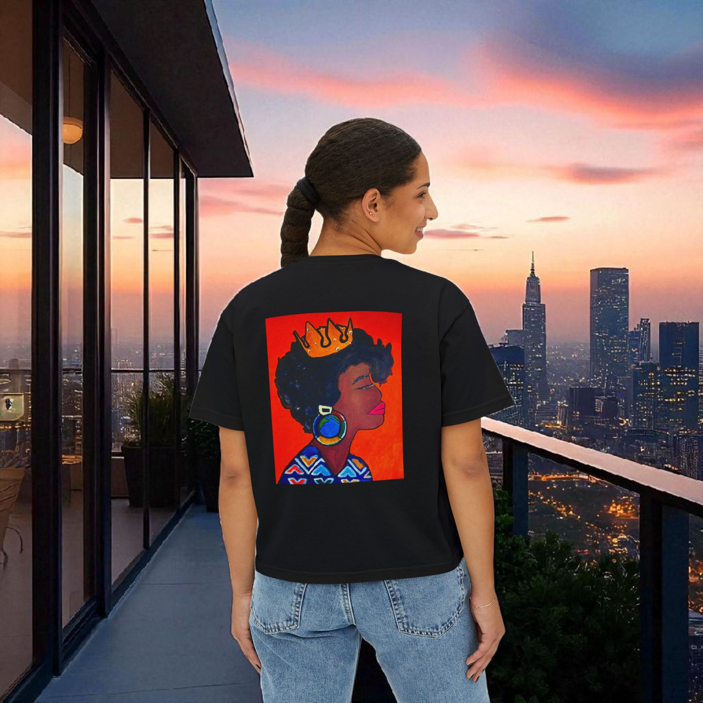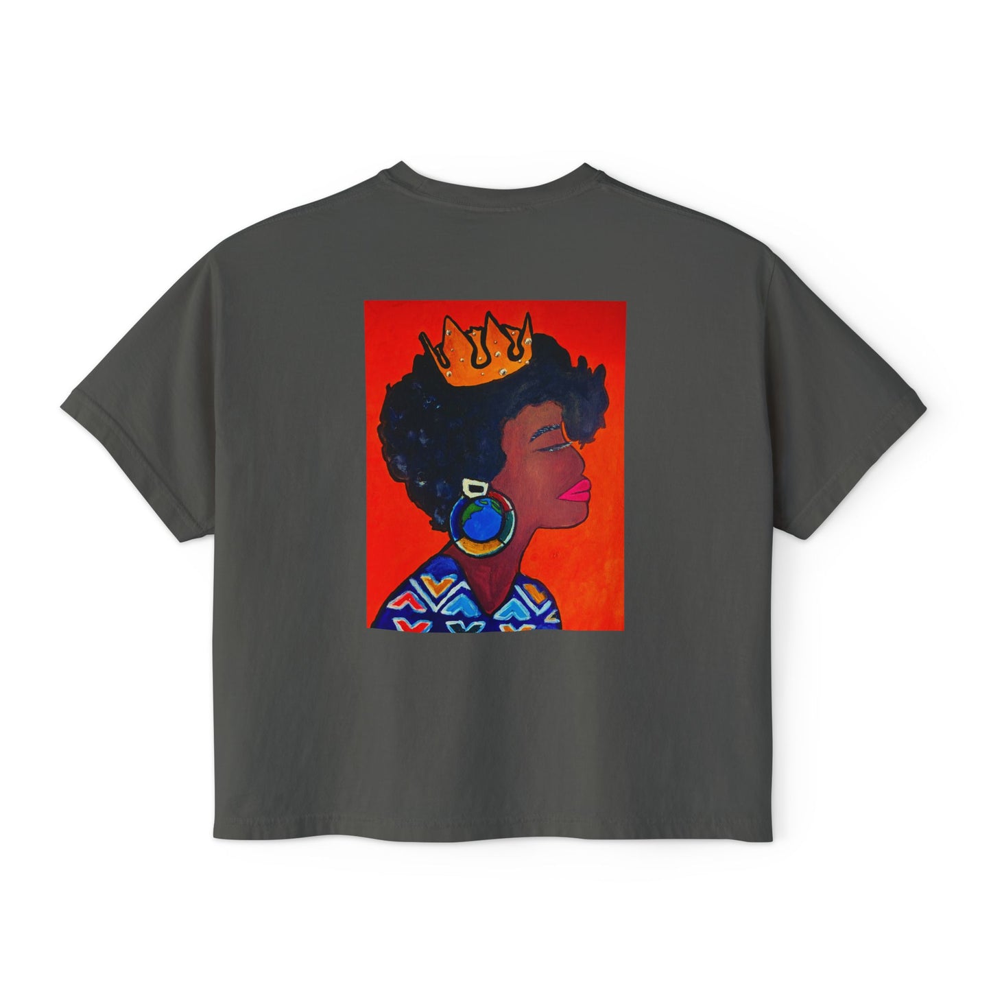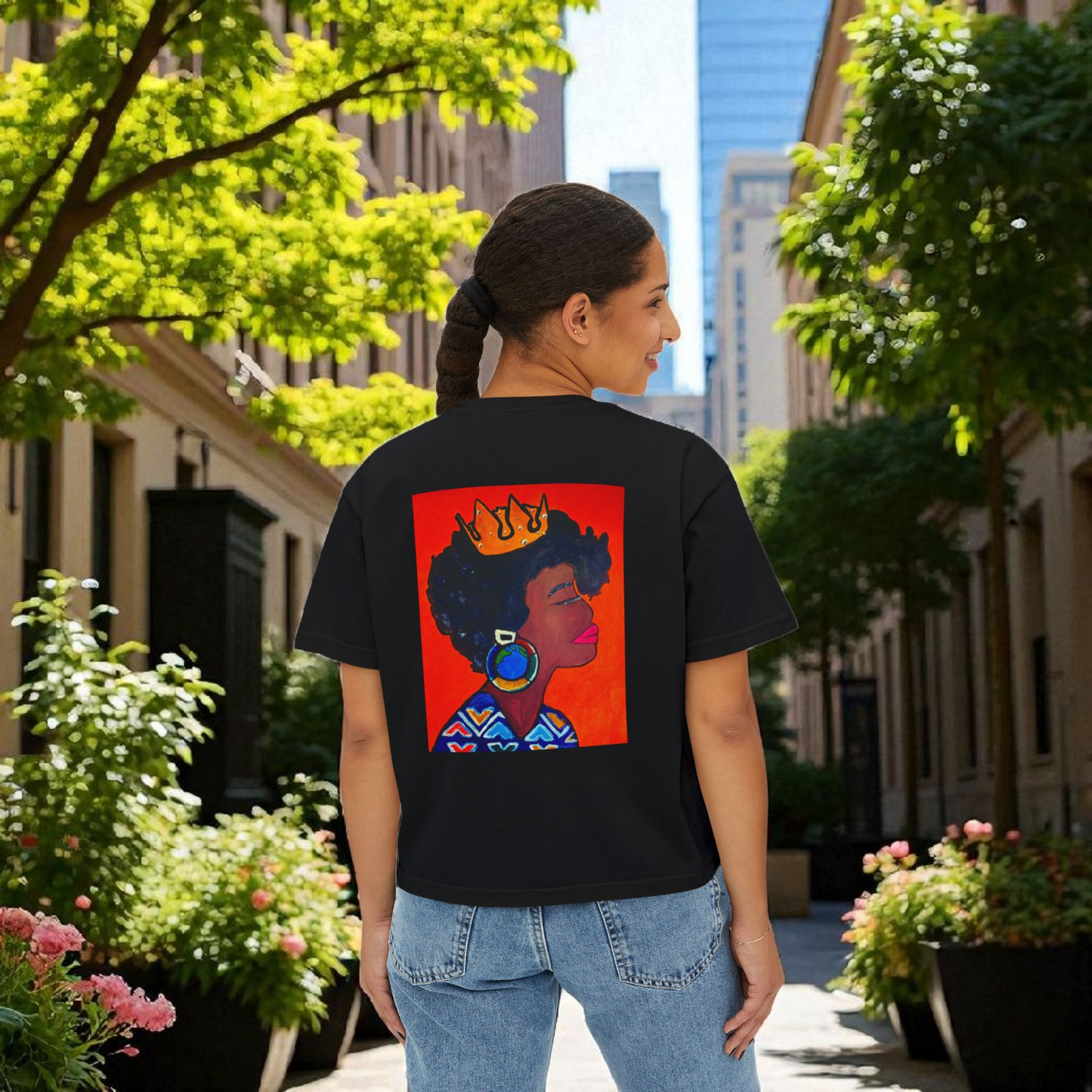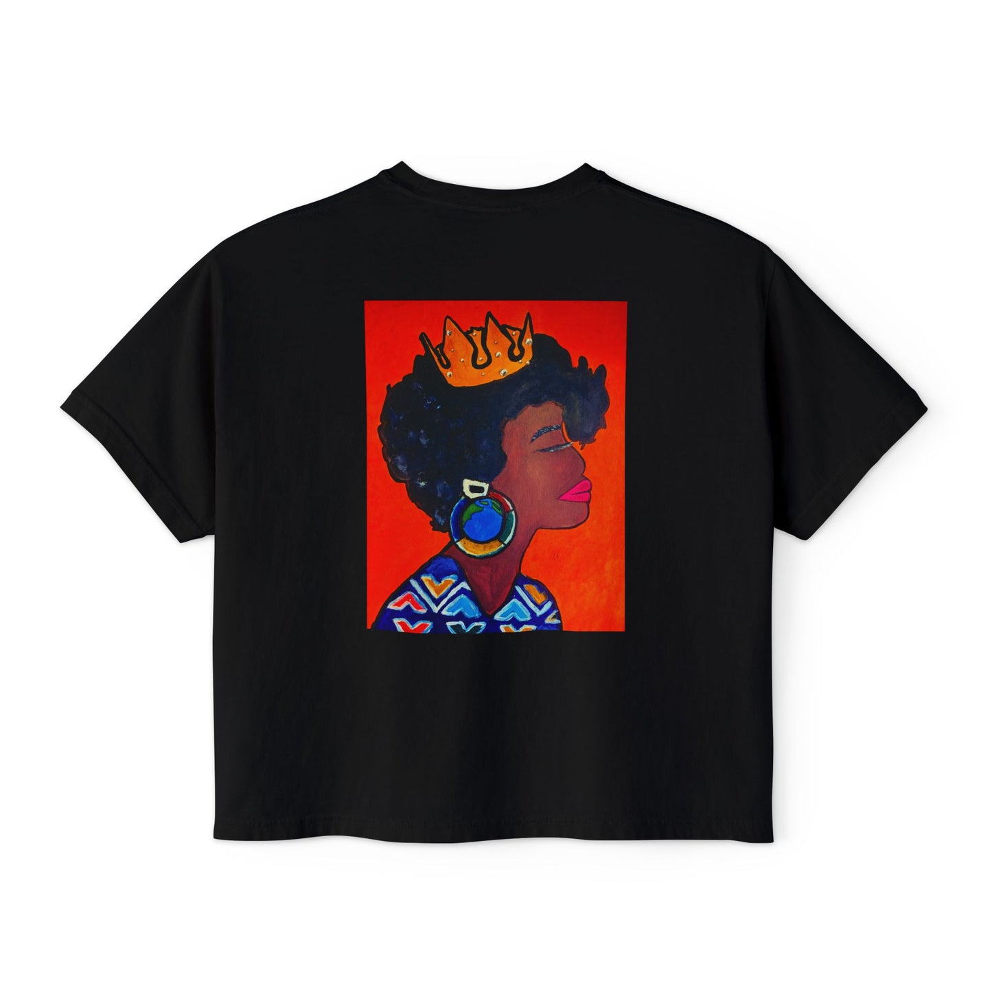 Crowned Black Woman Art Graphic T-Shirt, Afrocentric Women's Boxy Tee