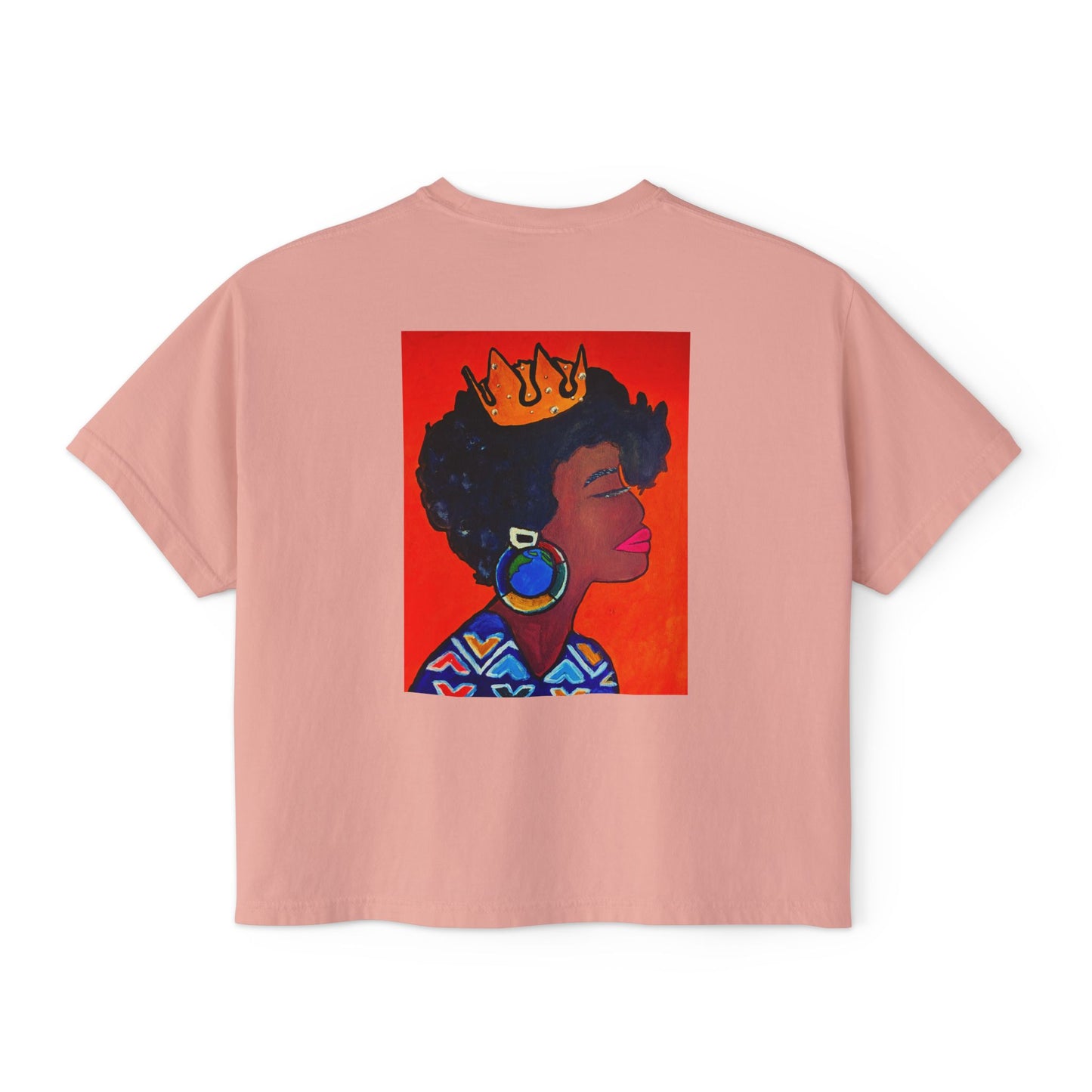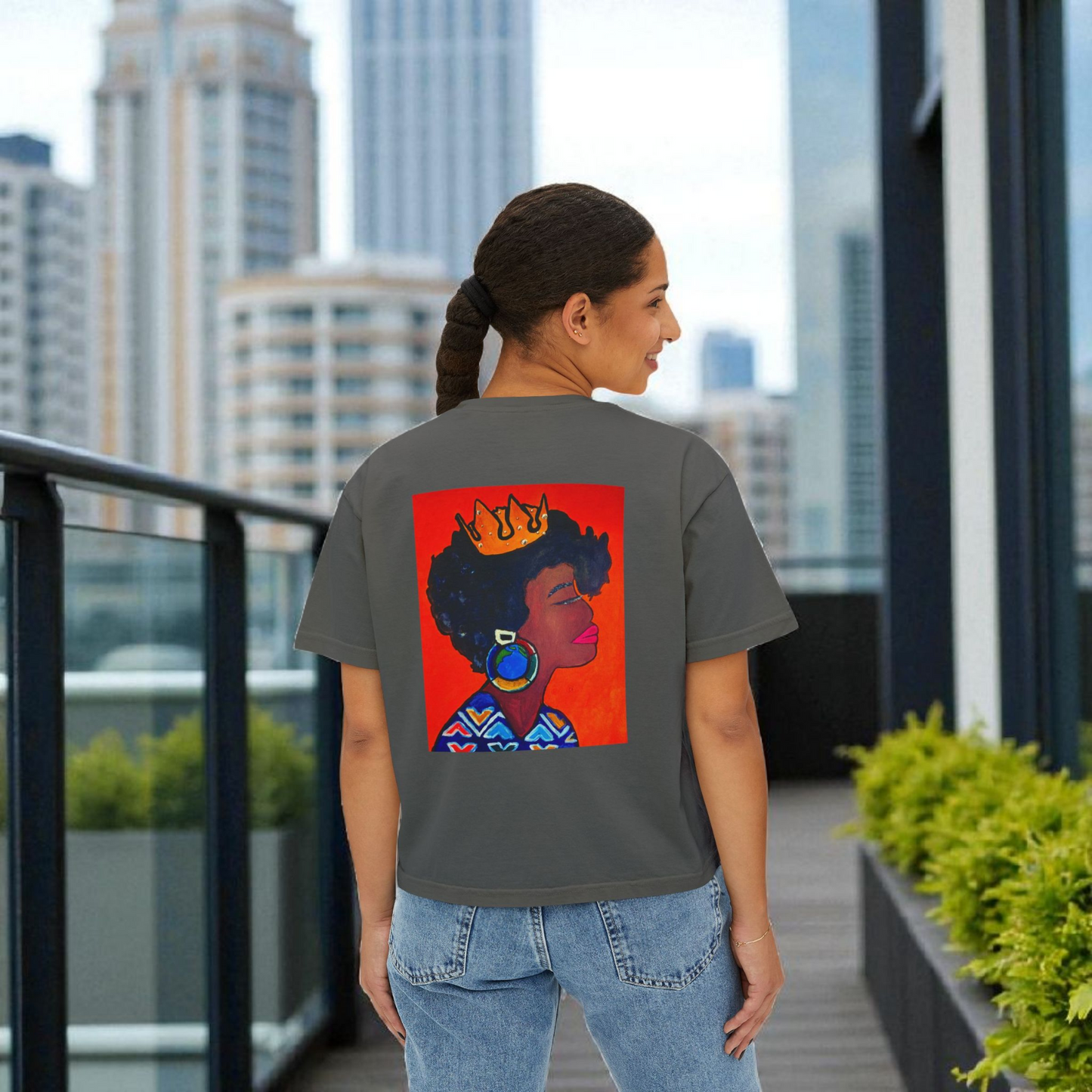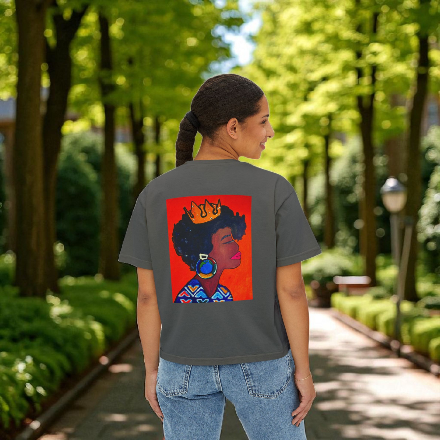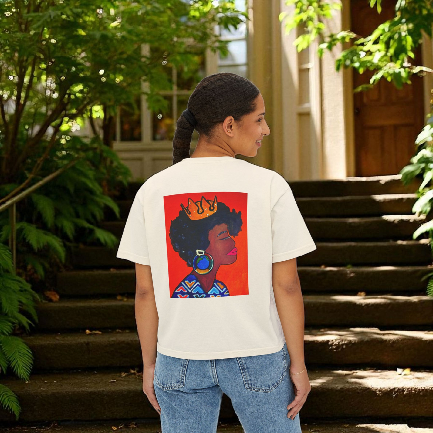 Crowned Black Woman Art Graphic T-Shirt, Afrocentric Women's Boxy Tee
