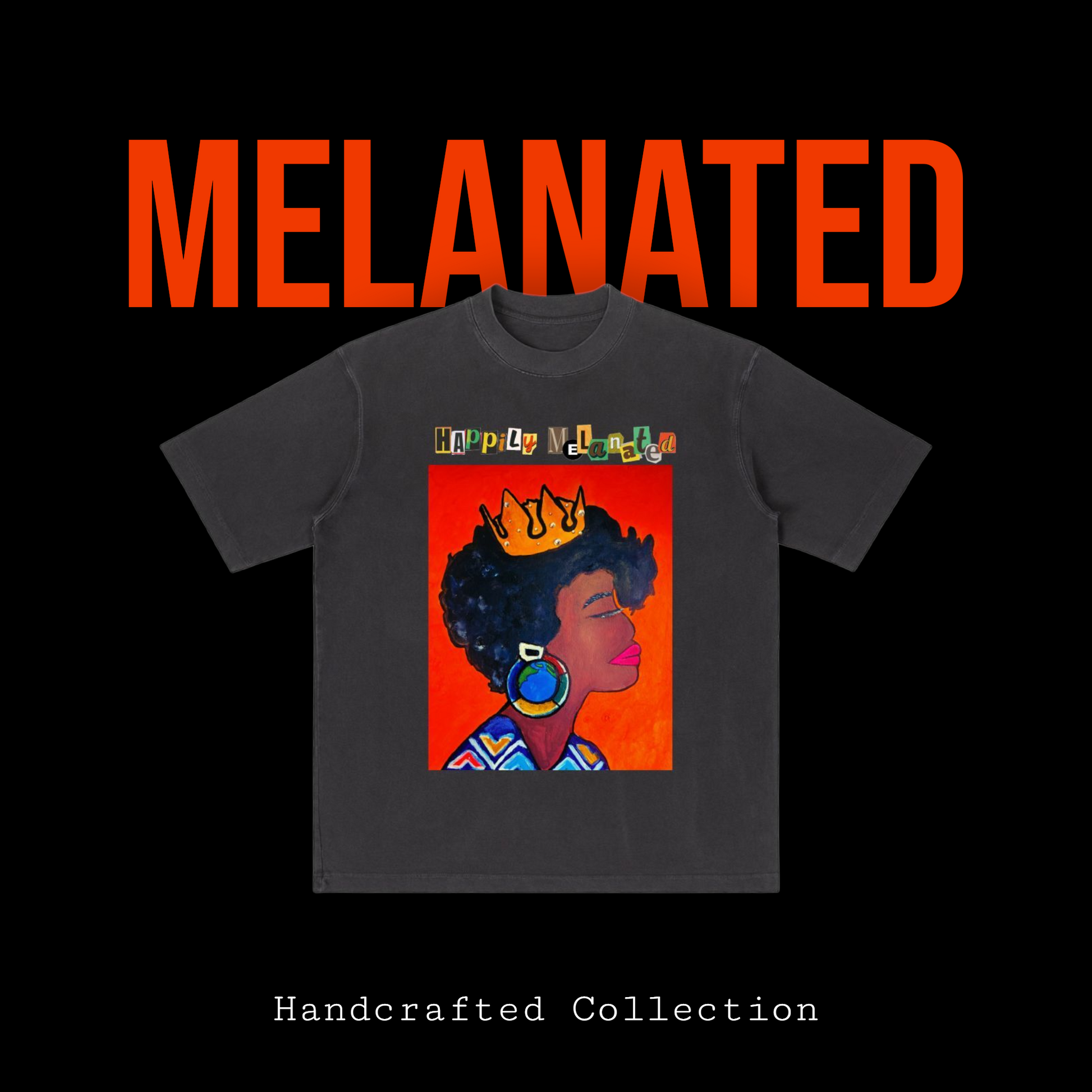 Crowned Black Woman Art Graphic Vintage Wash Drop Shoulder T-shirt