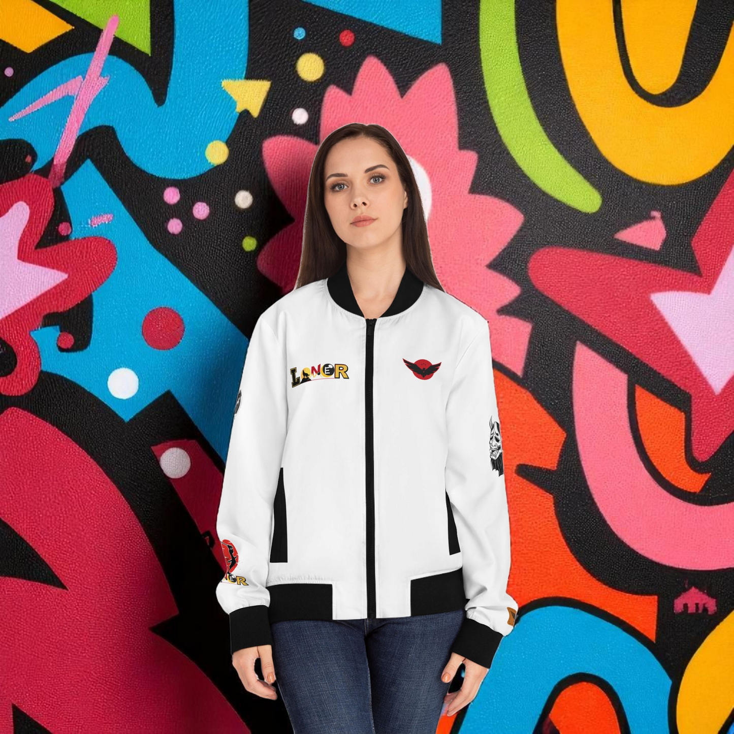 Dragon Graphic Women's Bomber Jacket, Mythical All Over Design, Zip Up Outerwear for Her