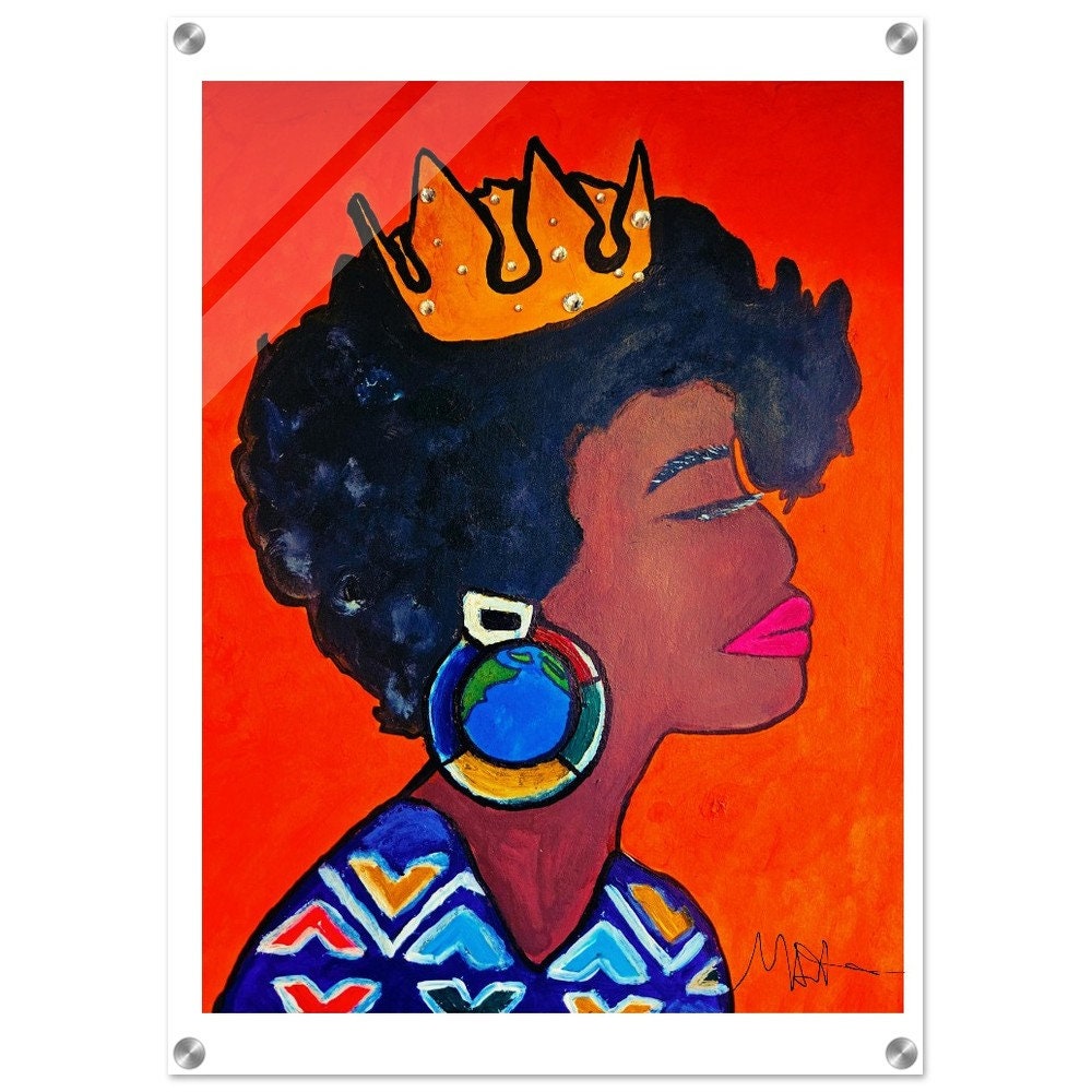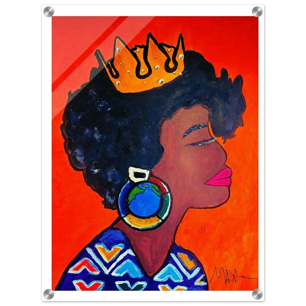 Original Artisan Black Woman Portrait, Elegant Afrocentric Painting, Office Decor