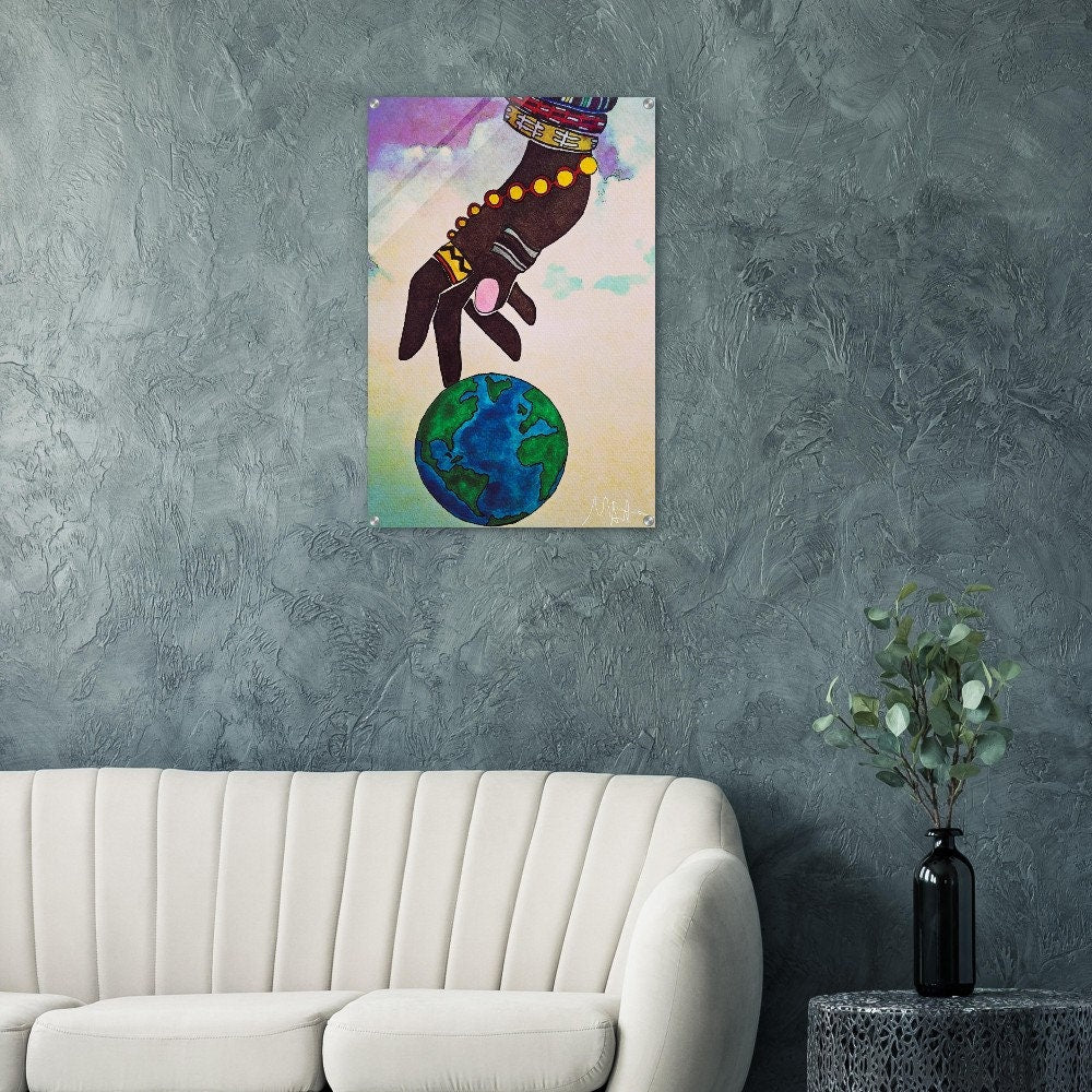 Ethnic Artwork Acrylic Print, Hand-Designed Celestial Patterns, Modern Home Art, Thoughtful Wedding Gift,