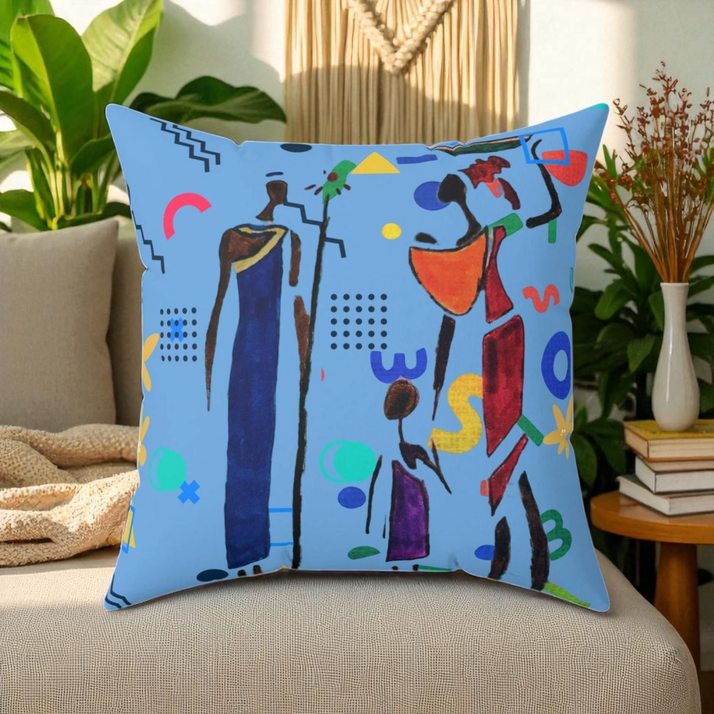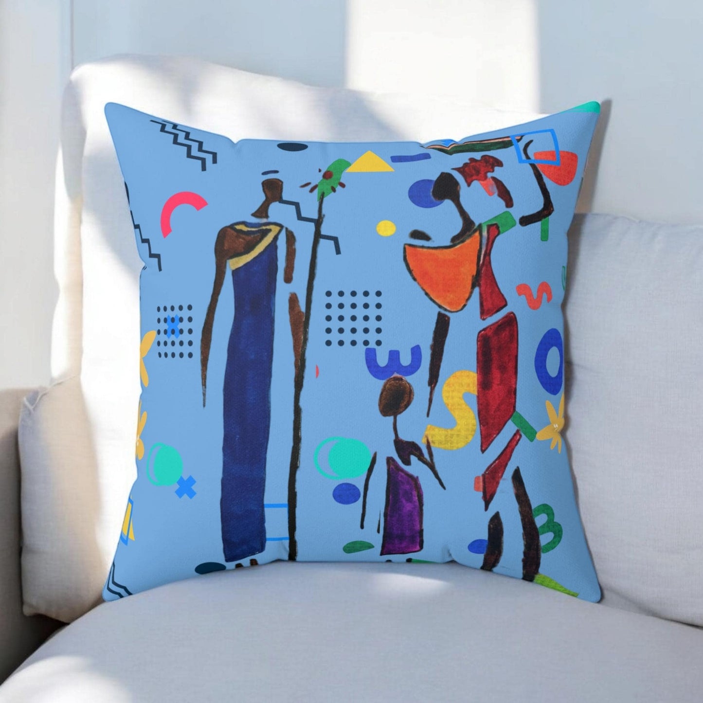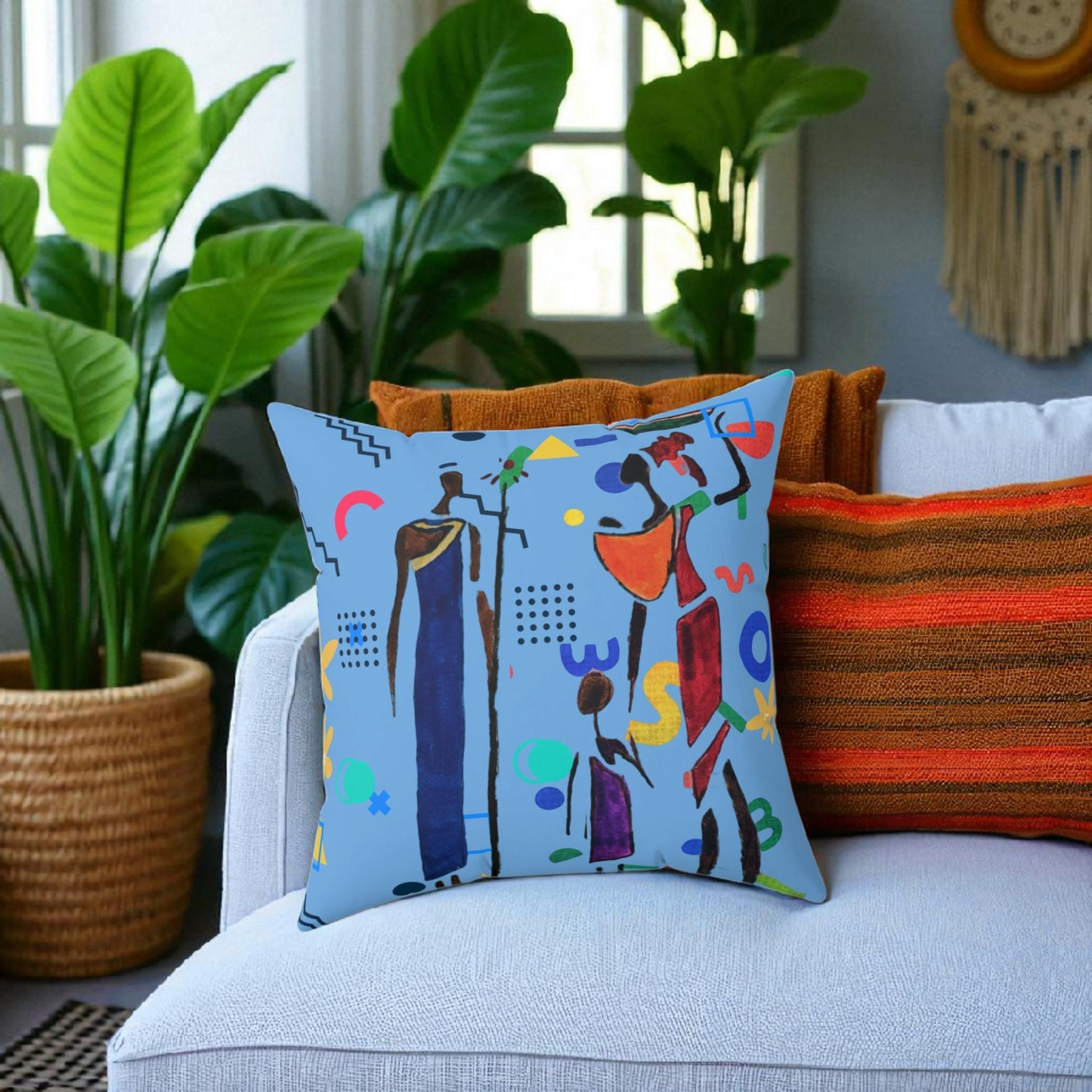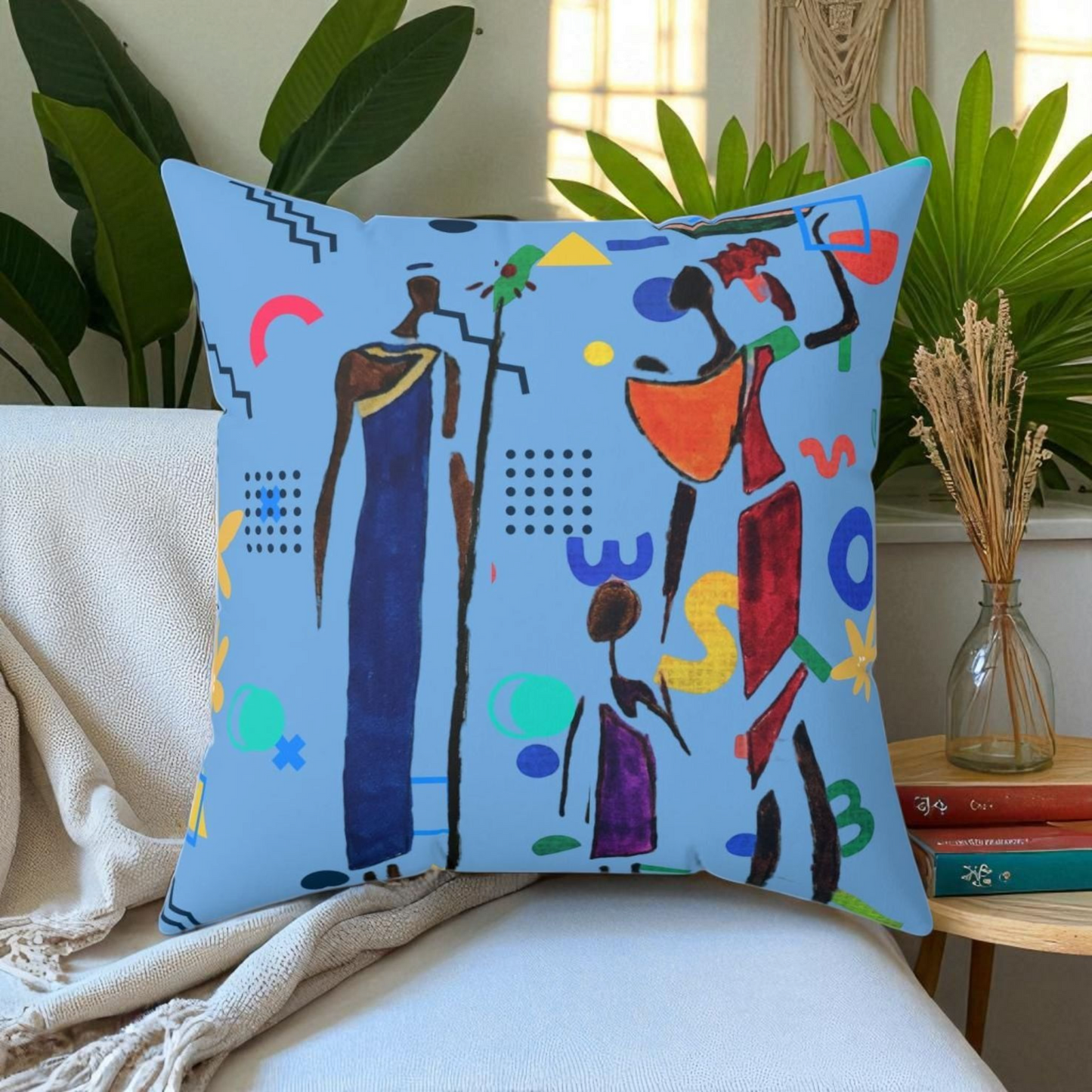 Ethnic Family Doodle Spun Polyester Square Pillow - Handcrafted Accent Throw Cushion
