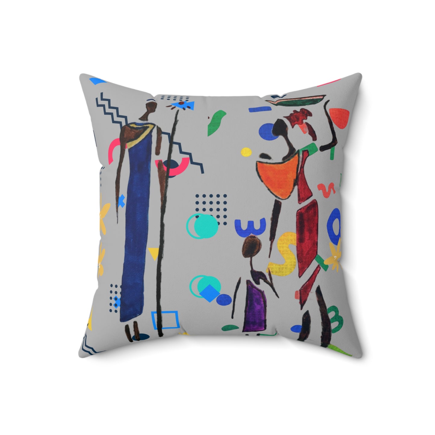 Ethnic Family Doodle Spun Polyester Square Pillow - Handcrafted Home Decor