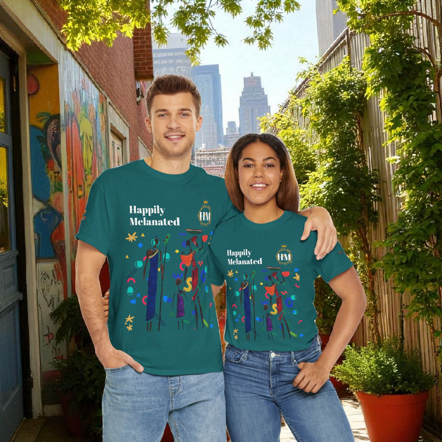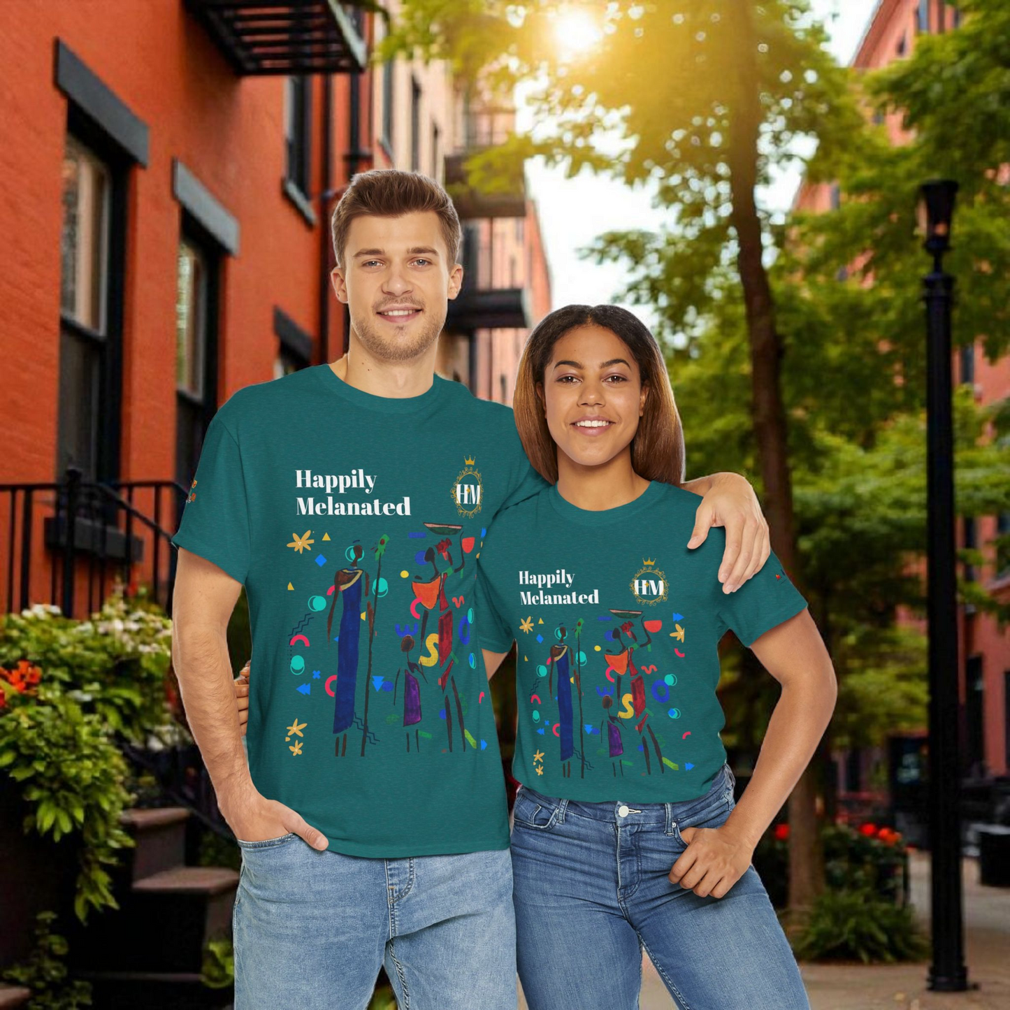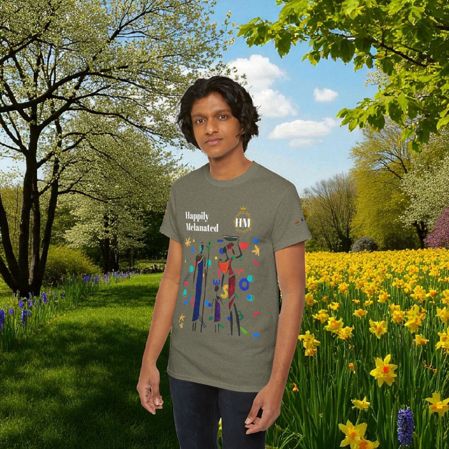 Handcrafted Ethnic Family Doodle on Unisex T-shirt. This unique tee exudes a warm, family-oriented vibe, perfect for casual wear or special family gatherings. Ideal for individuals looking for a touch of cultural representation in their everyday wardrobe. Relevant for family reunions, cultural celebrations, and everyday wear. Product features - Shoulder tape for stability - Ribbed knit collar for shape retention - Made from strong and smooth specially spun fibers - Classic fit for comfort - Ethically grown and harvested US cotton Care instructions - Machine wash: warm (max 40C or 105F) - Non-chlorine: bleach as needed - Tumble dry: medium - Do not iron - Do not dryclean
