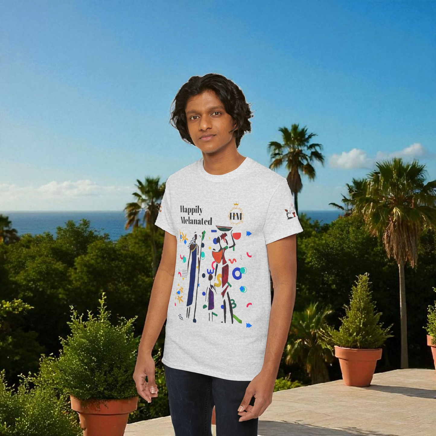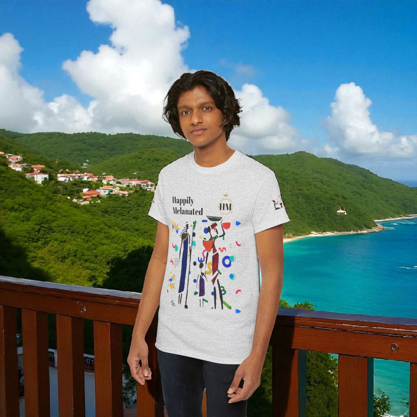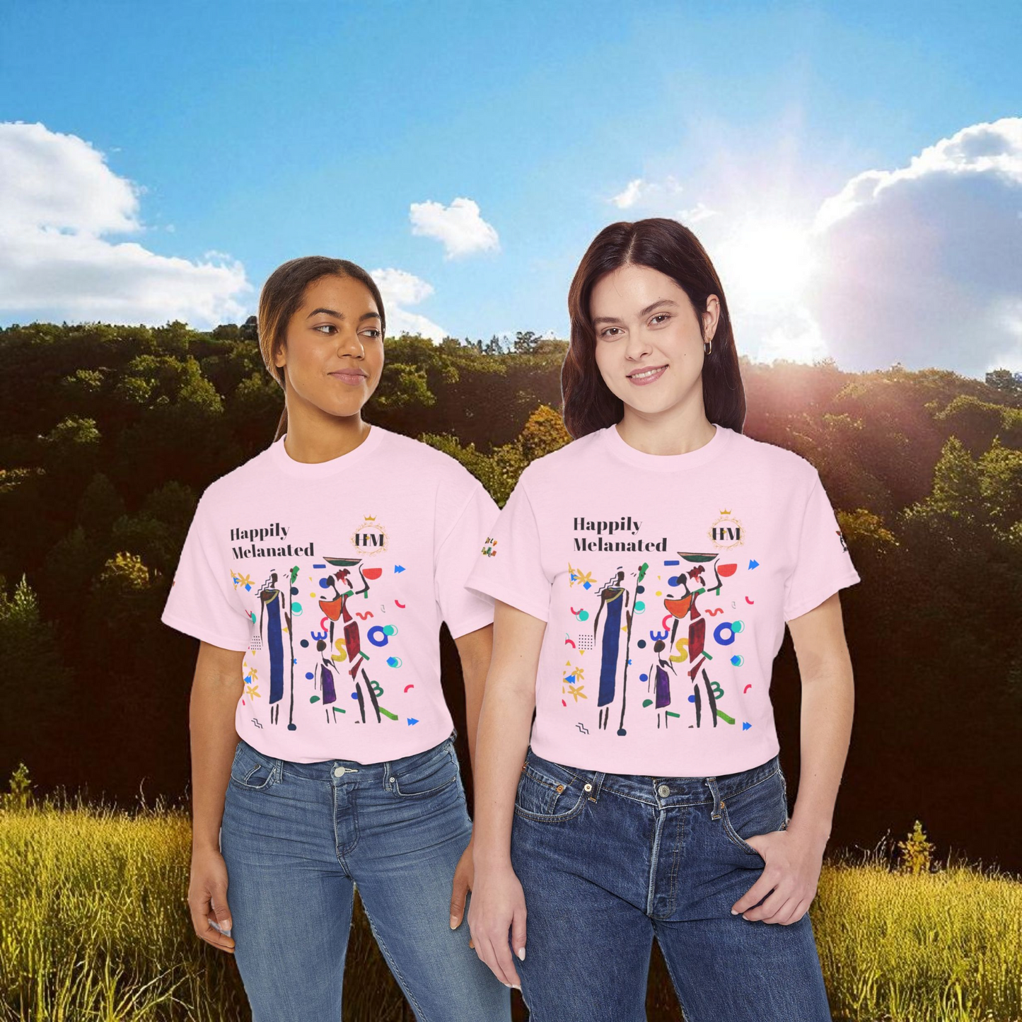 Handcrafted Ethnic Family Doodle on Unisex T-shirt. This unique tee exudes a warm, family-oriented vibe, perfect for casual wear or special family gatherings. Ideal for individuals looking for a touch of cultural representation in their everyday wardrobe. Relevant for family reunions, cultural celebrations, and everyday wear. Product features - Shoulder tape for stability - Ribbed knit collar for shape retention - Made from strong and smooth specially spun fibers - Classic fit for comfort - Ethically grown and harvested US cotton Care instructions - Machine wash: warm (max 40C or 105F) - Non-chlorine: bleach as needed - Tumble dry: medium - Do not iron - Do not dryclean