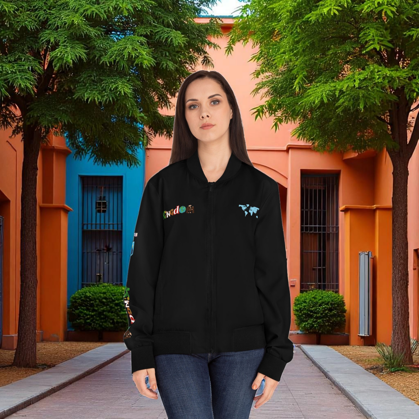 Explorer Themed Graphic Women's Bomber Jacket - Travel Enthusiast, Wanderlust Coat