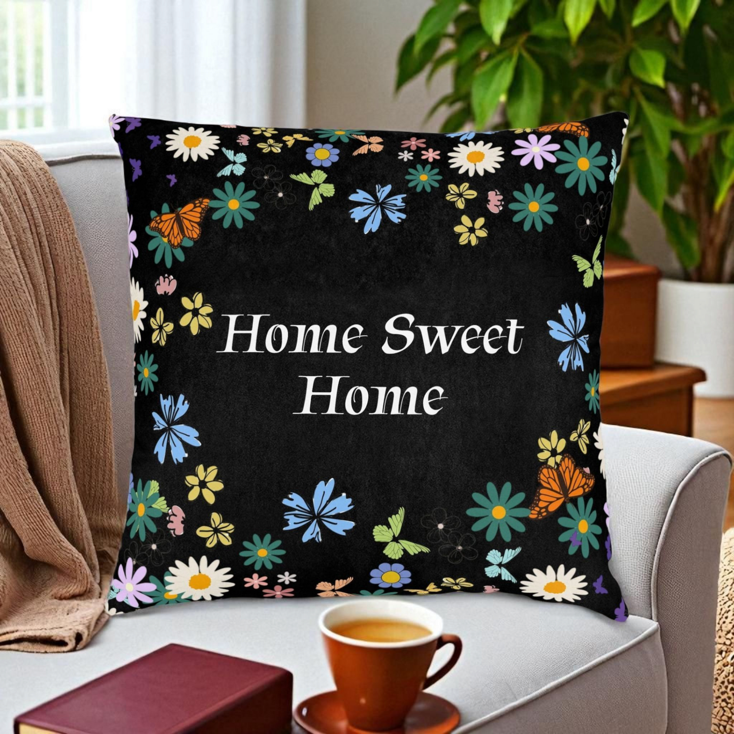 Floral Home Sweet Home Square Pillow - Cozy Decor for Living Room & Bedroom