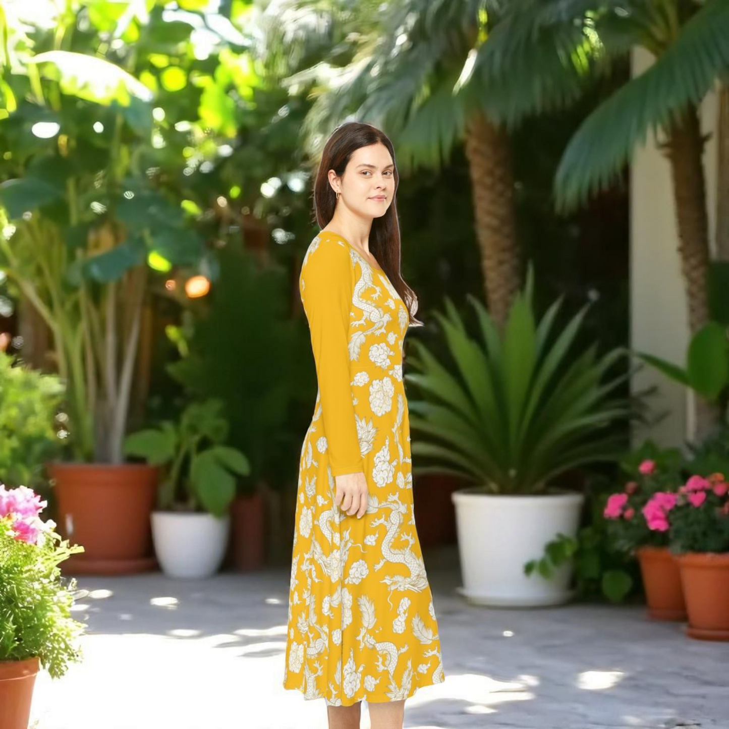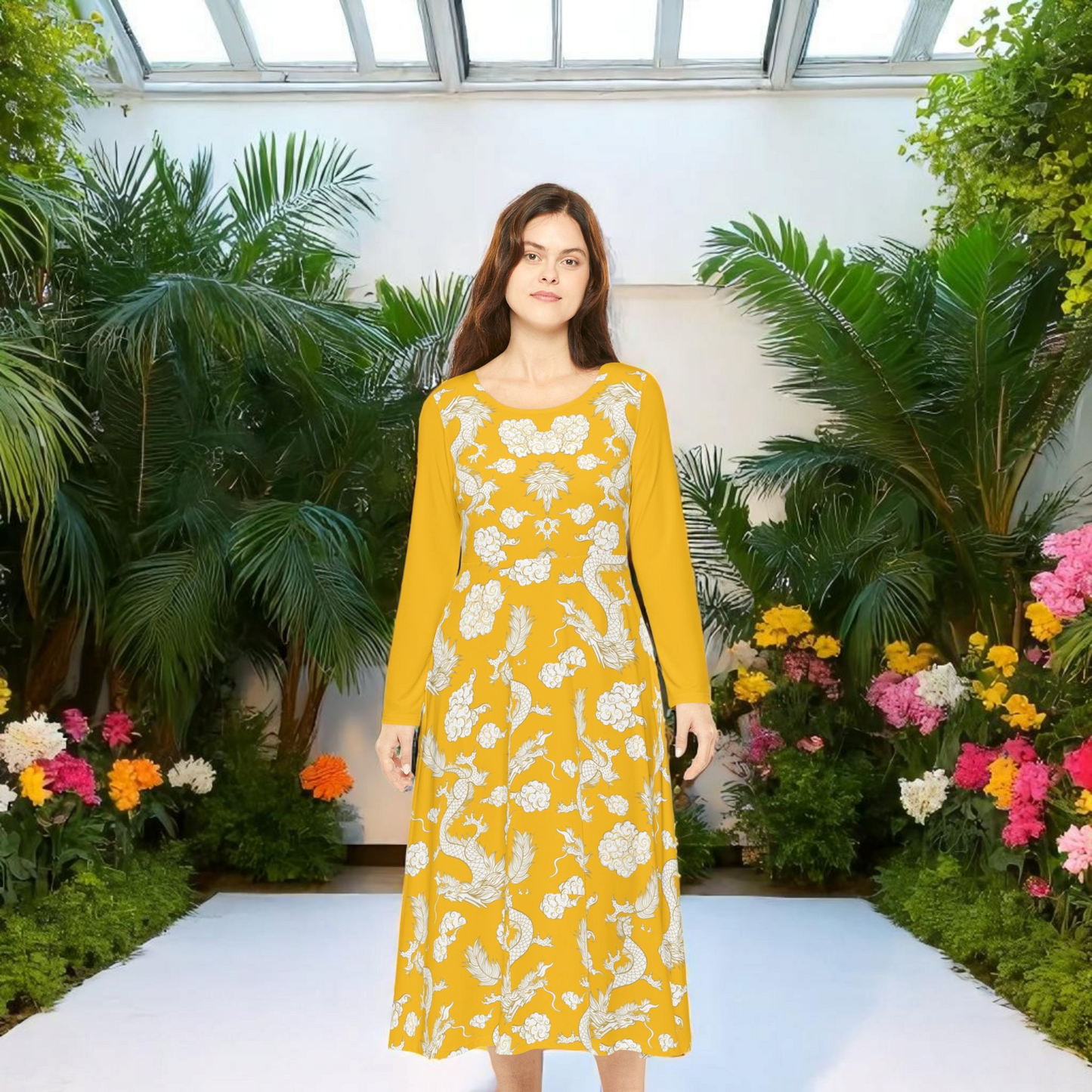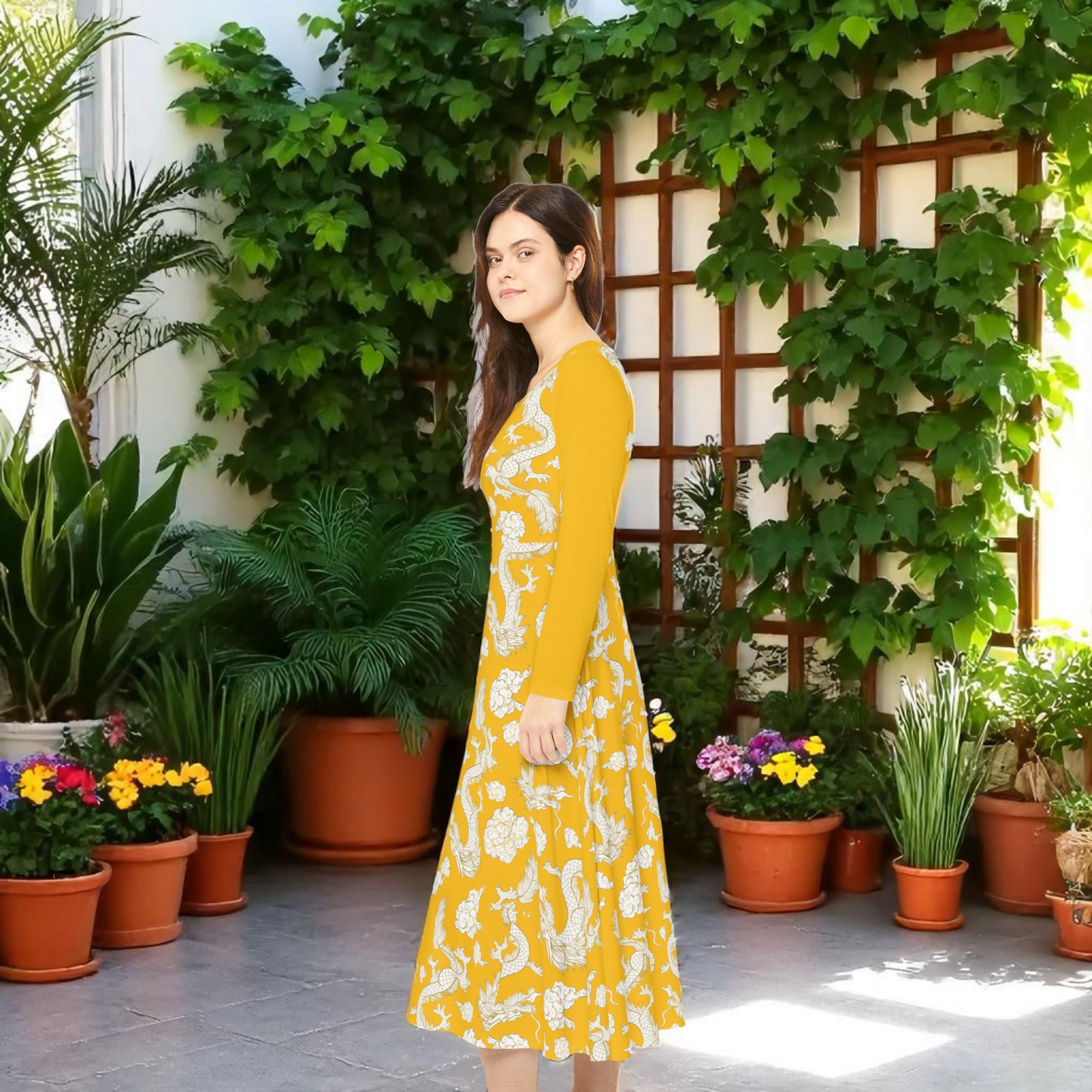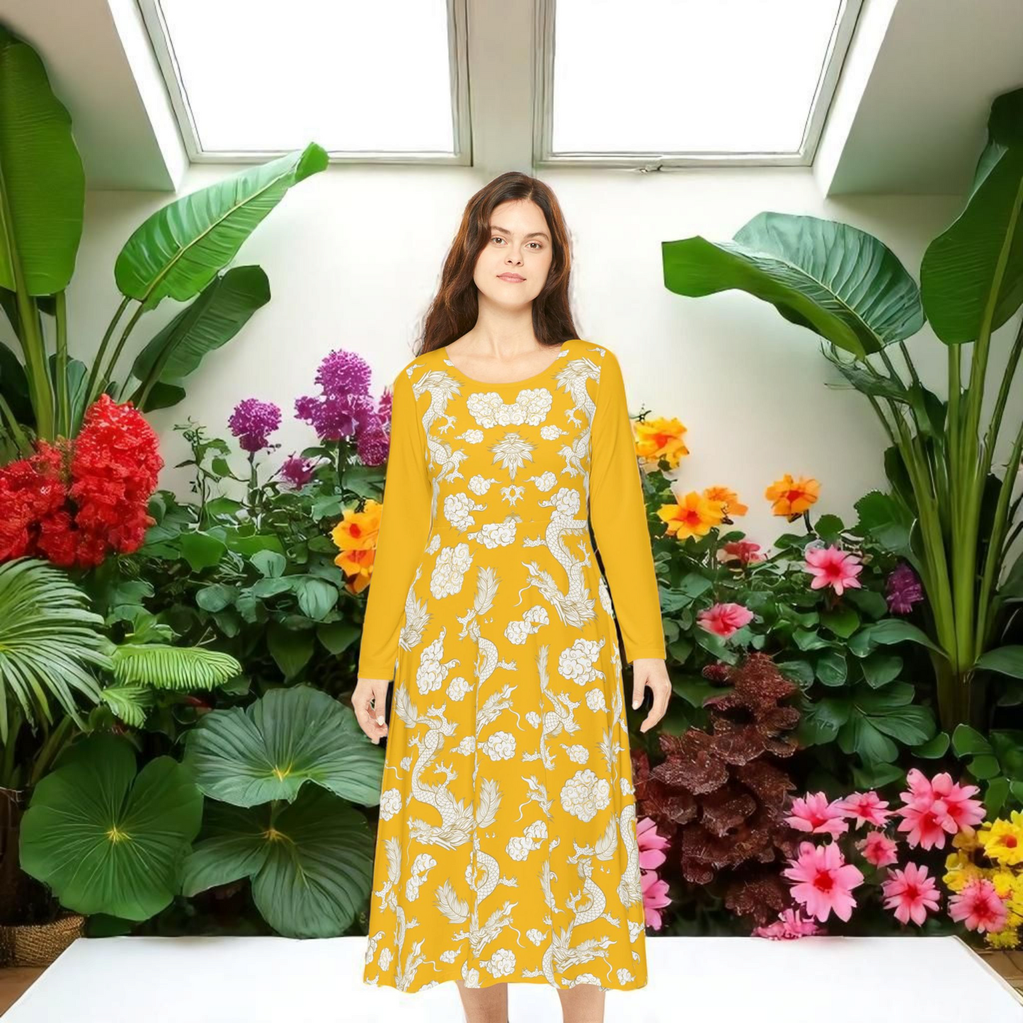 Dragon Print Long Sleeve Dance Dress | Boho Style, Dance Wear, Vintage Inspired
