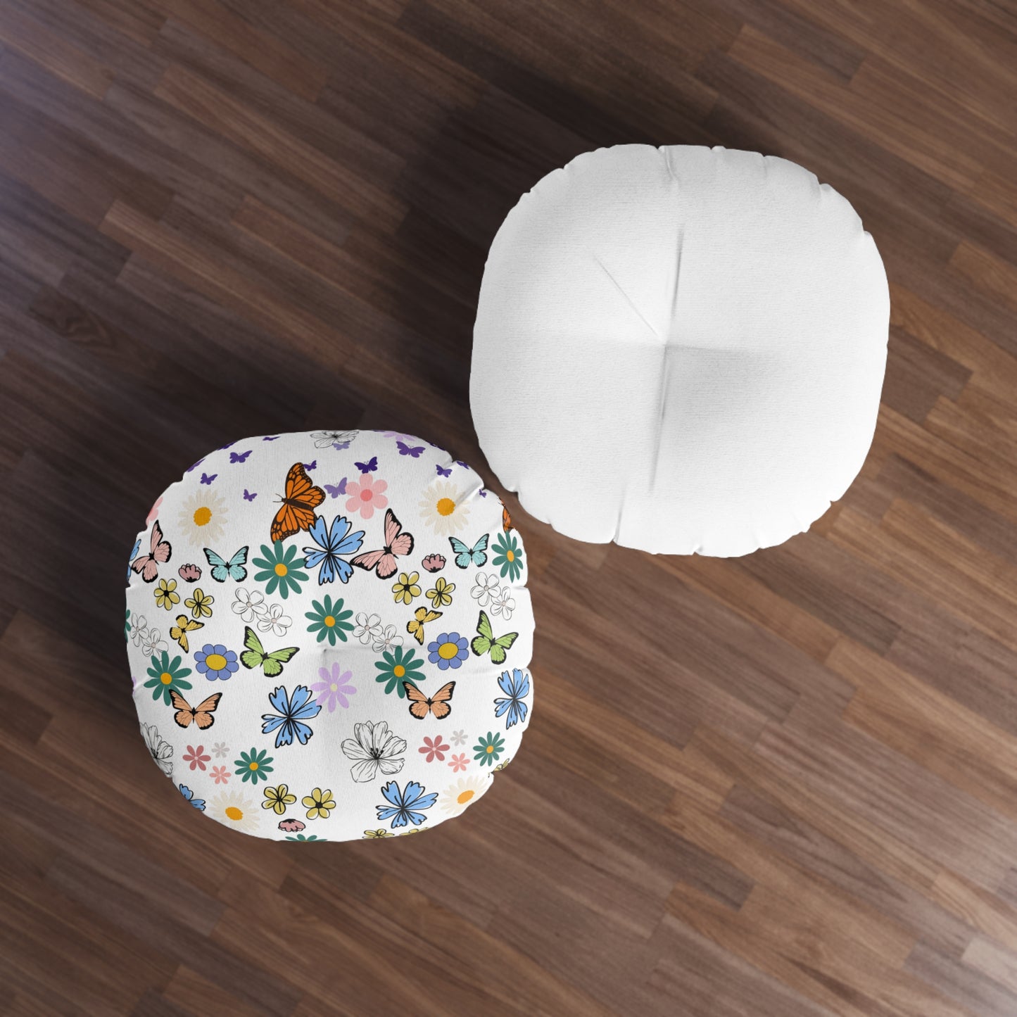 Floral Tufted Floor Pillow - Round Cushion for Cozy Decor