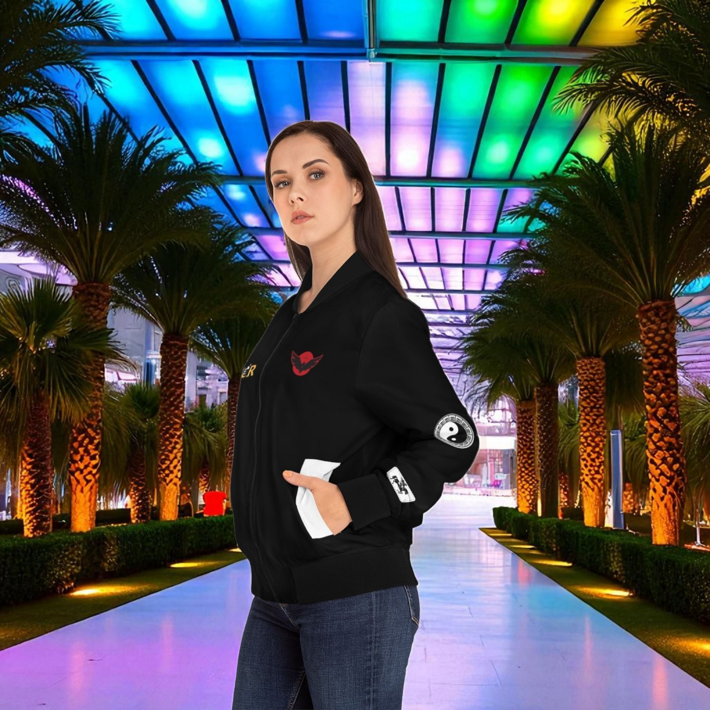 This Gothic Bomber women's Jacket features unique eye art, creating a bold and edgy vibe. Perfect for those looking to make a statement with their fashion choices. Ideal for women who love alternative styles and want to stand out from the crowd. Great for Halloween, music festivals, or casual everyday wear. Product features - 100% polyester fabric for strength and durability - Ribbed collar, cuffs, and bottom hem for a well-fitted look - Front pockets for convenience - Durable metal zipper with metal puller - Regular fit for comfort Care instructions - Do not dryclean - Iron, steam or dry: low heat - Tumble dry: medium heat - Do not bleach - Machine wash: cold (max 30C or 90F)