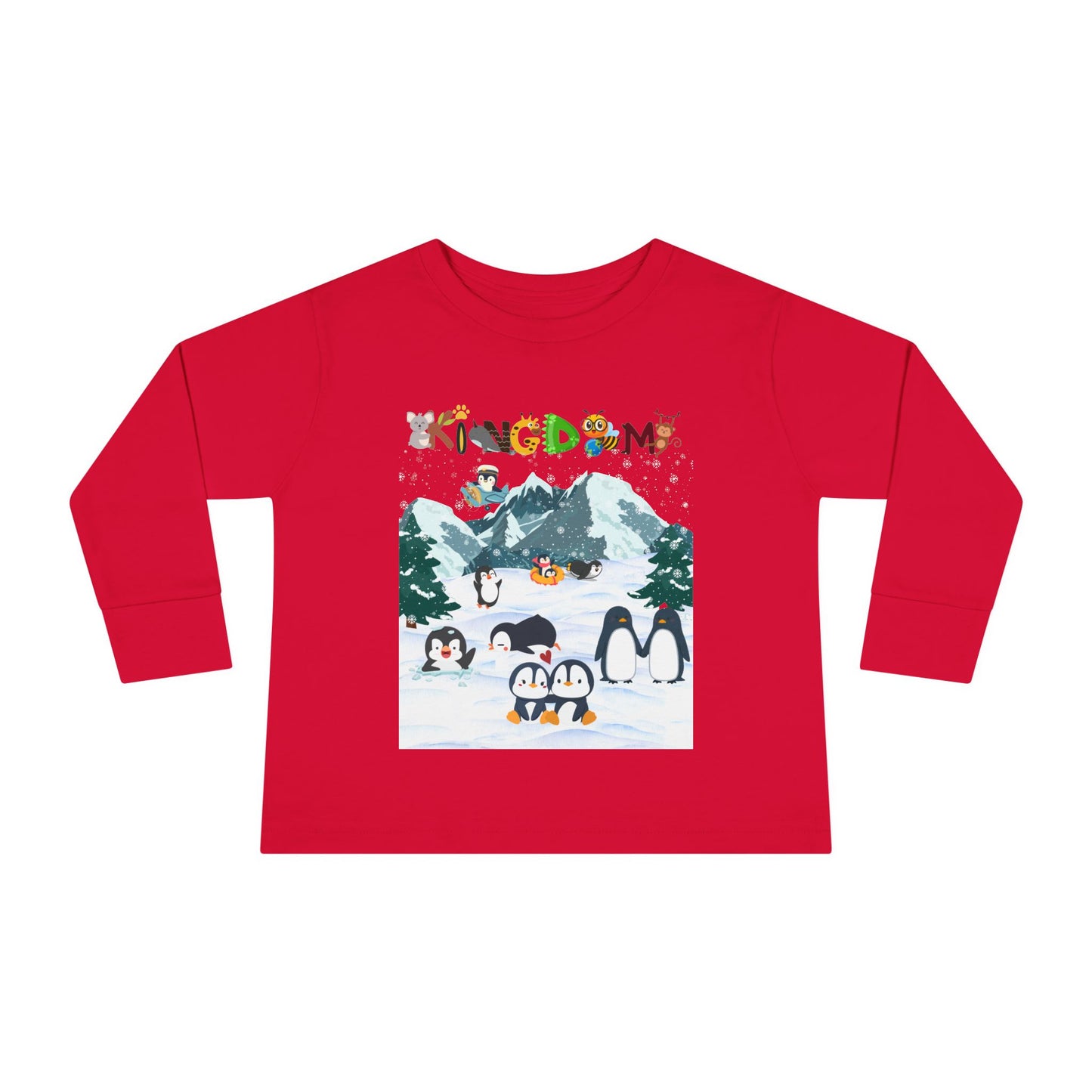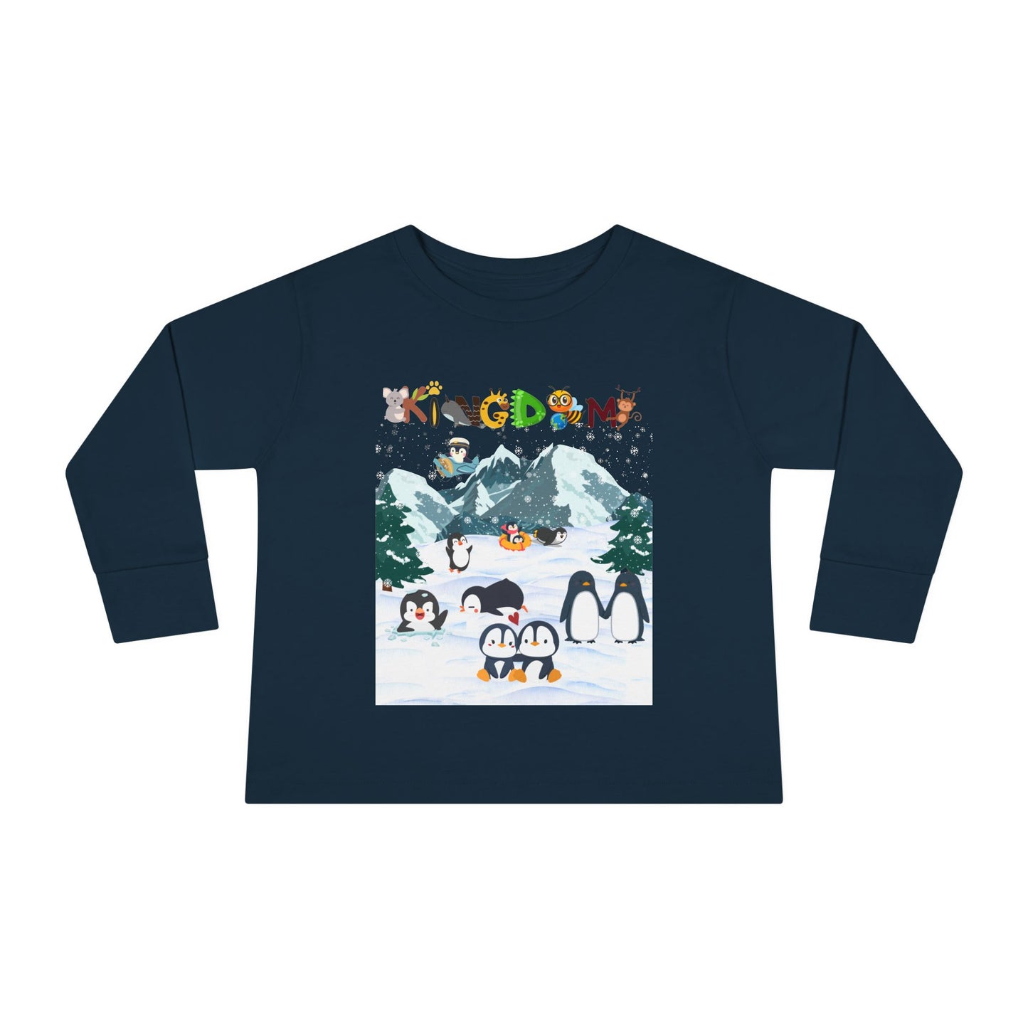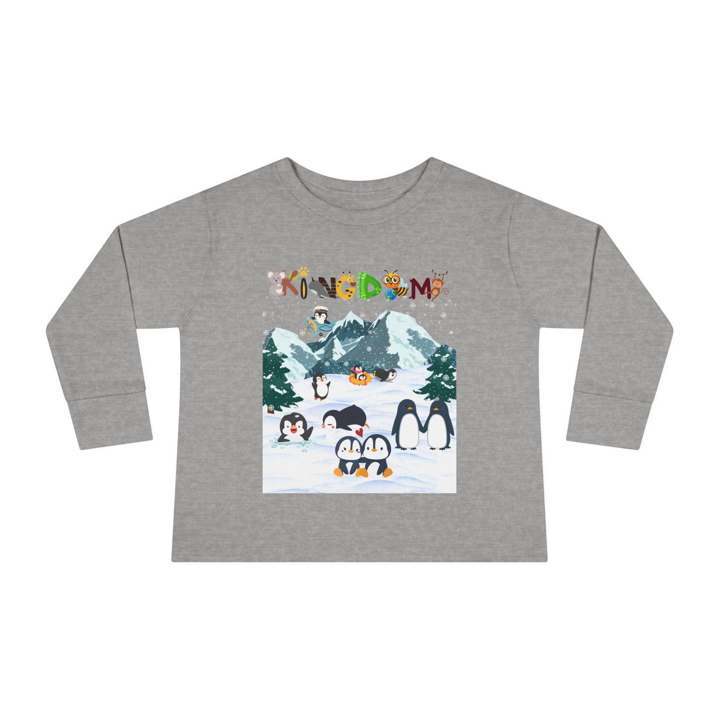 Graphic Penguin Toddler Long Sleeve Tee - Cute Animal Print Shirt for Kids, Winter Theme