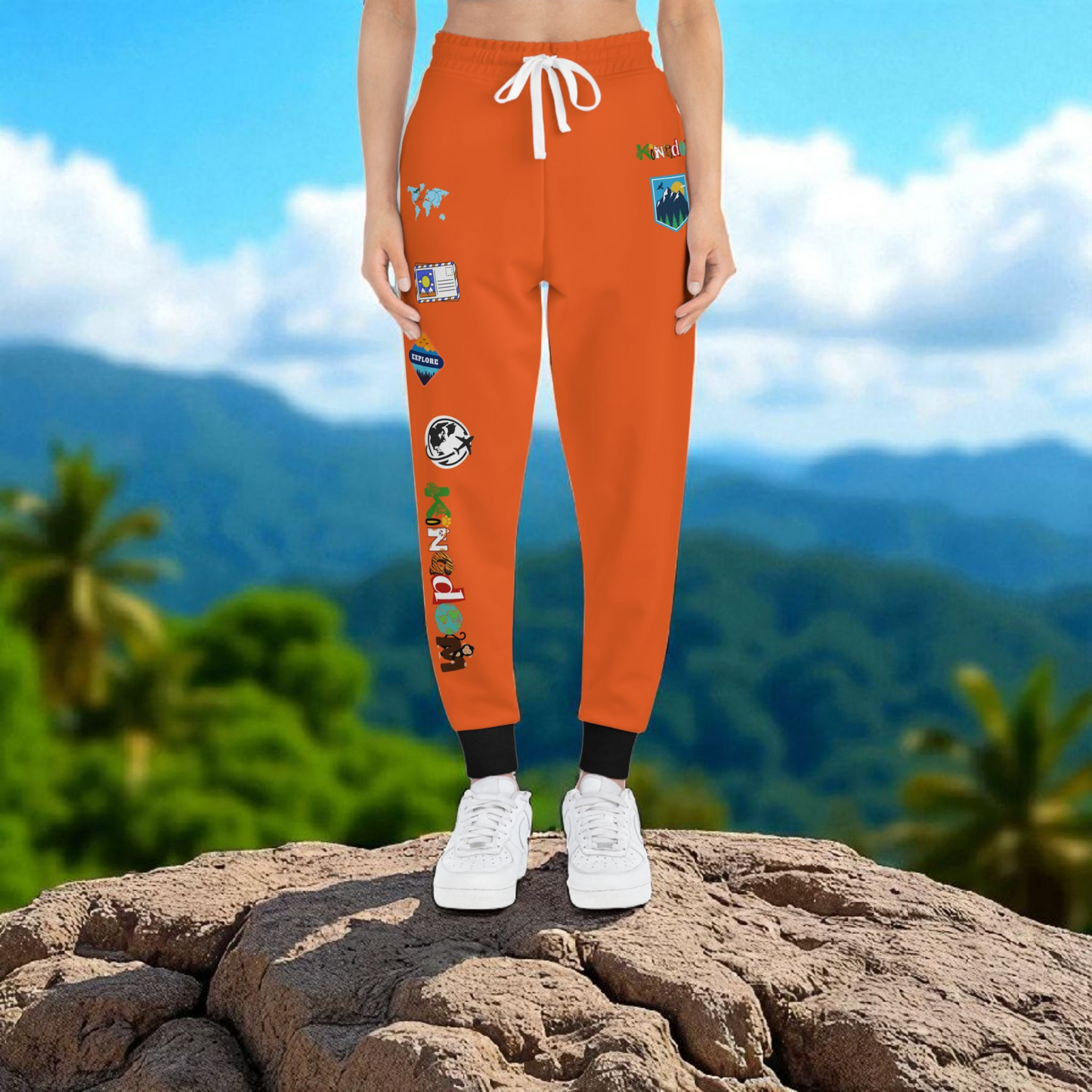 Graphic Travel-Inspired Athletic Joggers, Unisex Workout Pants
