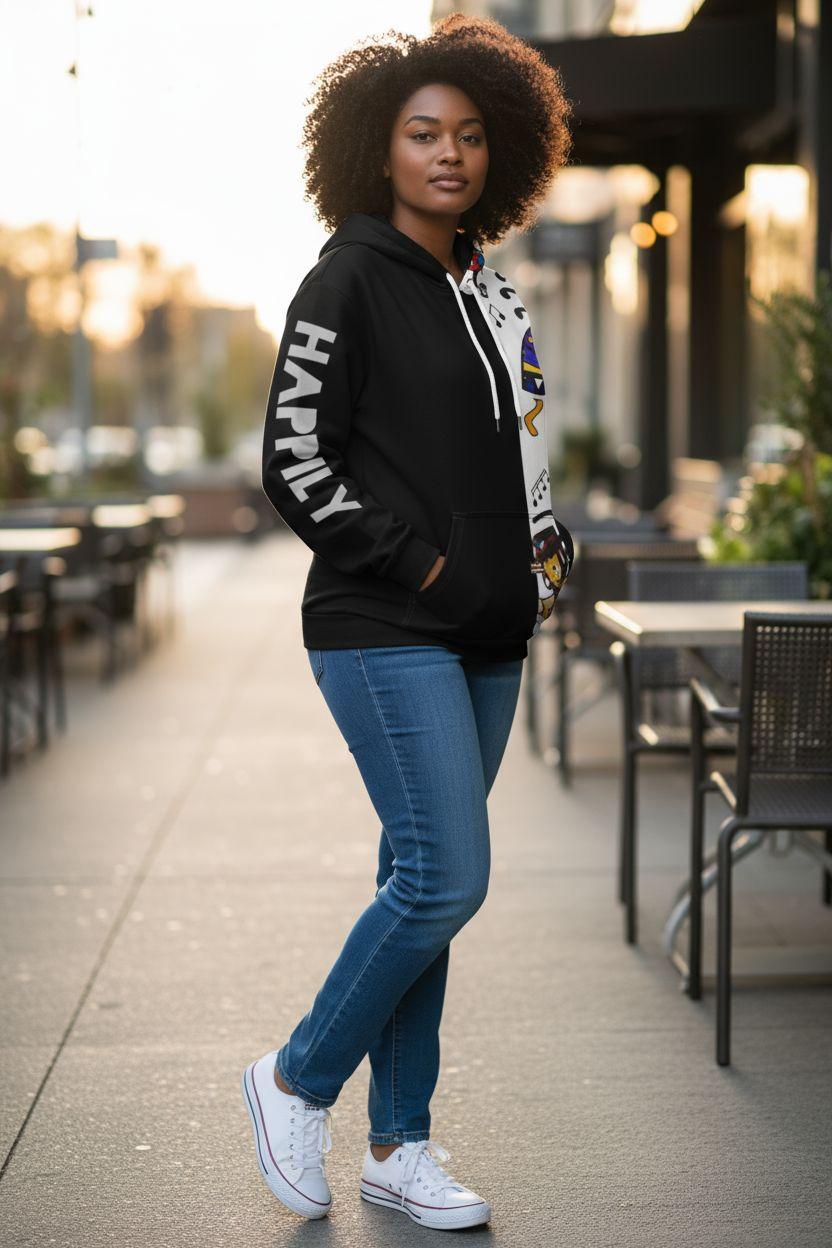Hand-Drawn Afro Music Motifs Allover Hoodie, Unisex Streetwear for All