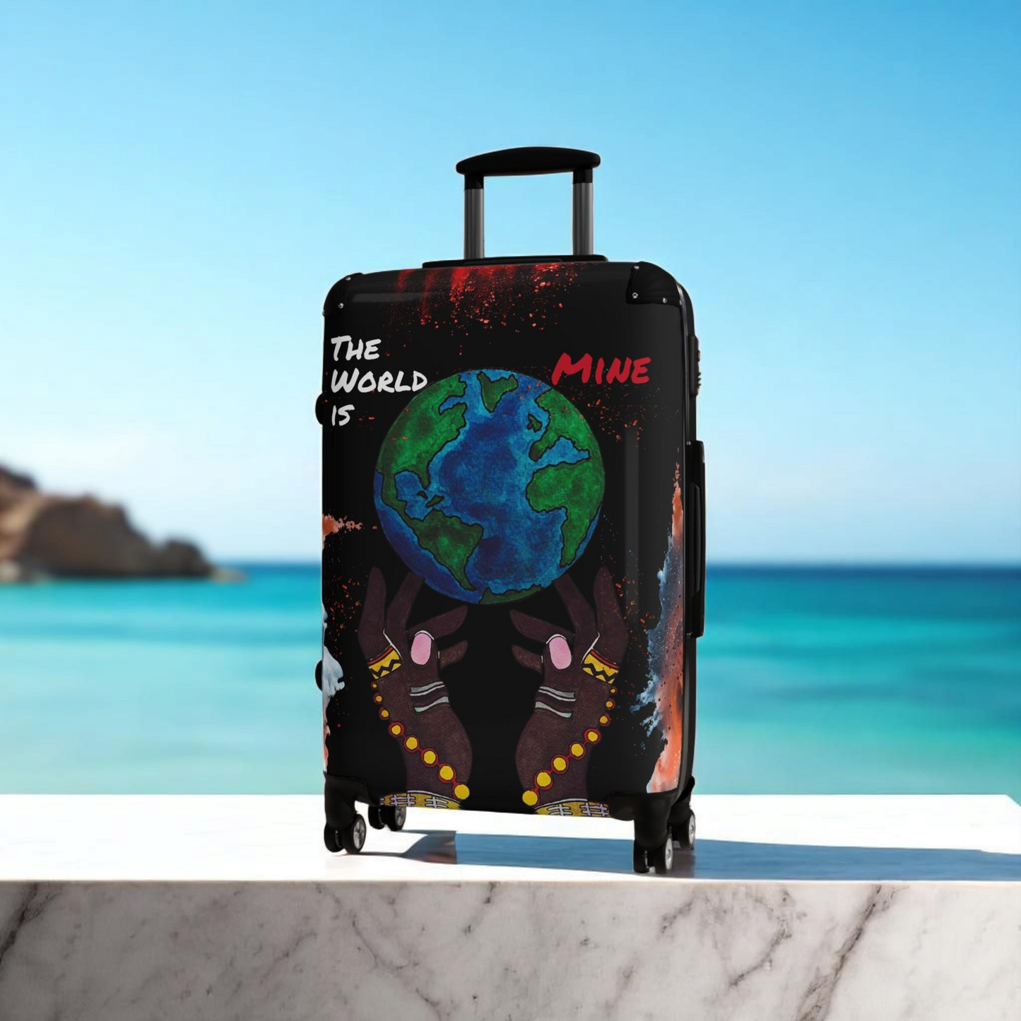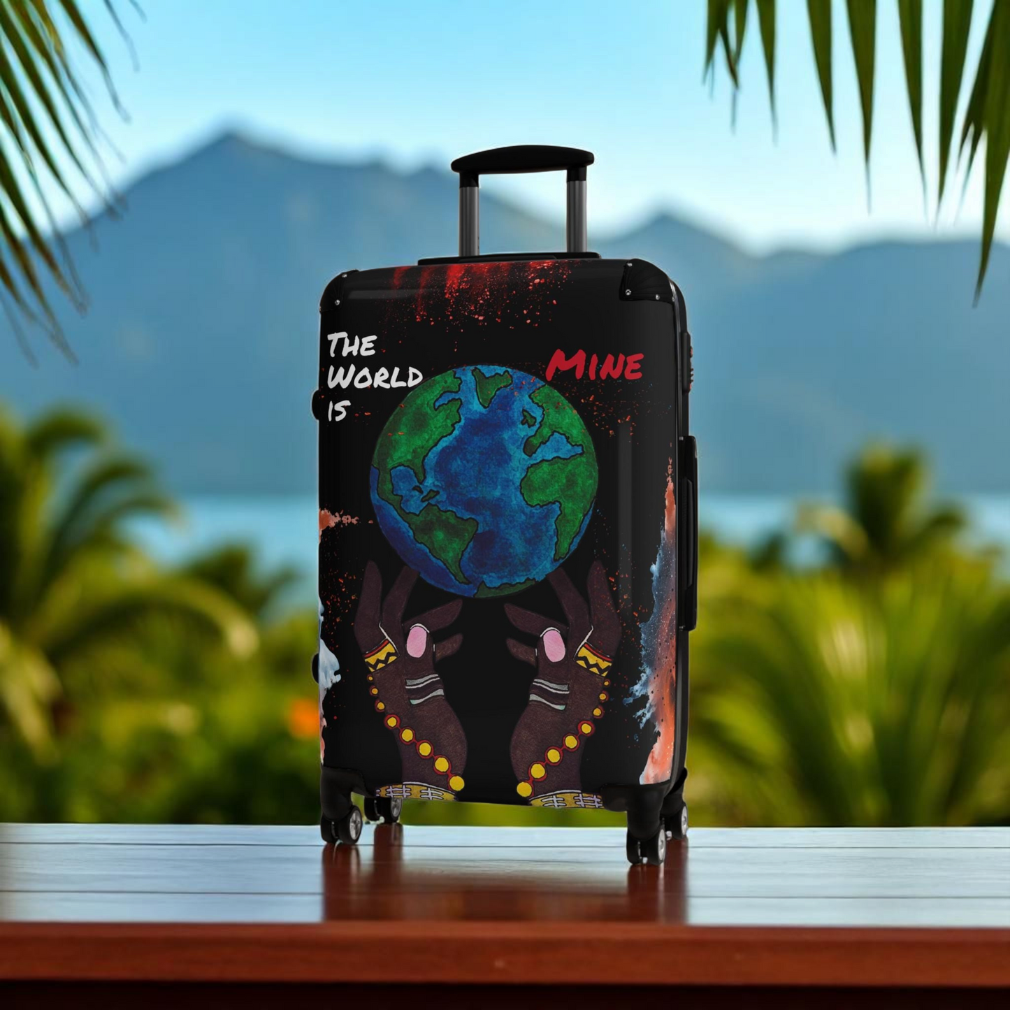 Handcrafted Afro Galactic Art Suitcase, Travel Luggage, African Inspired Carry-On Bag