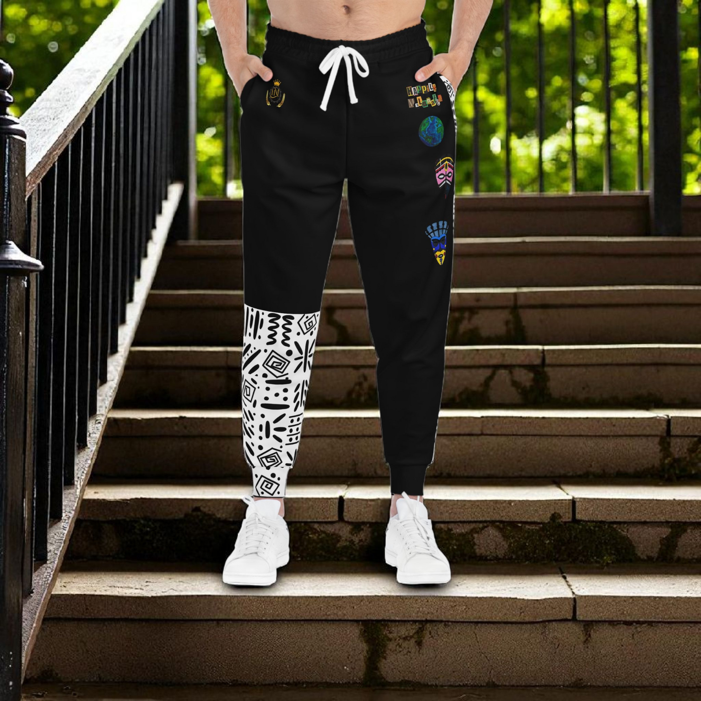 Handcrafted Afro Music Cartoon Art Athletic Joggers, Unisex Sweatpants, African Dance Jogging Pants