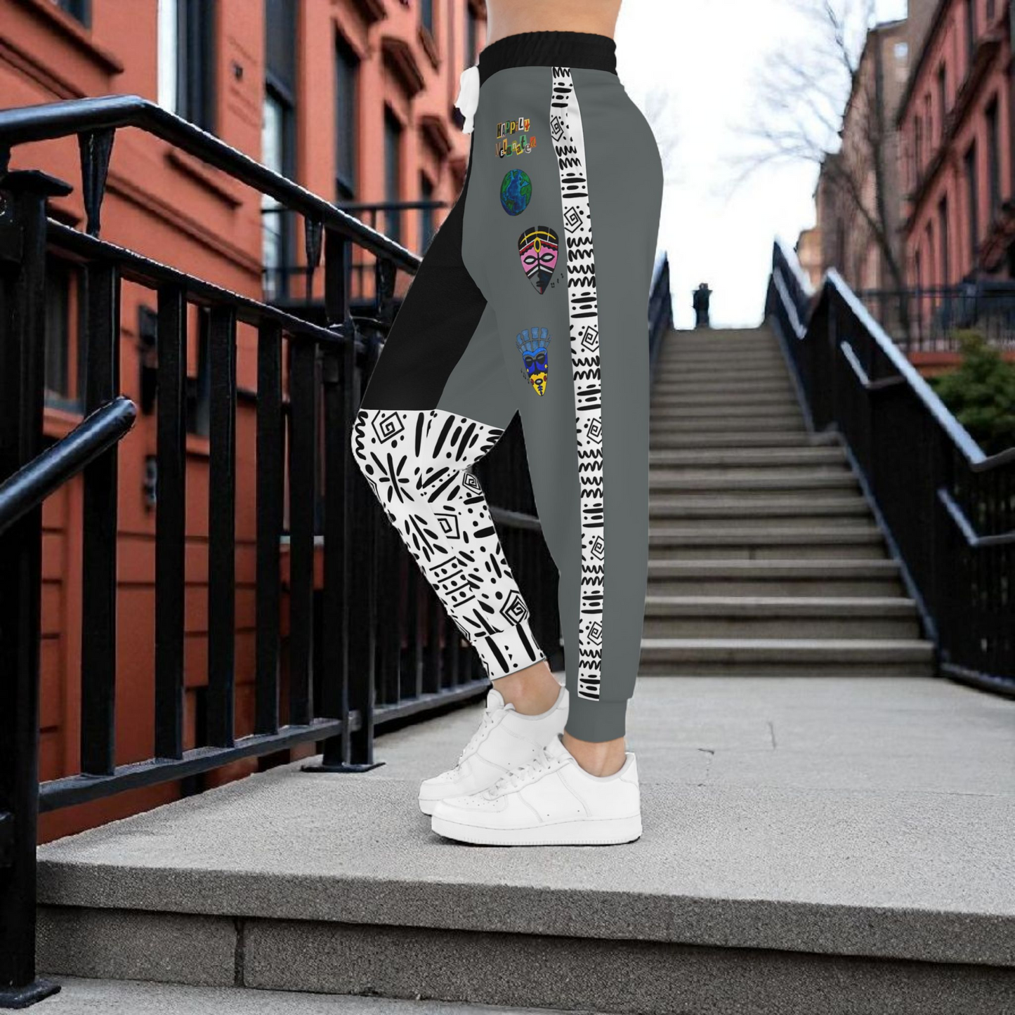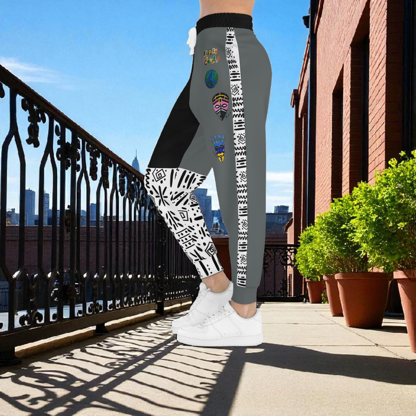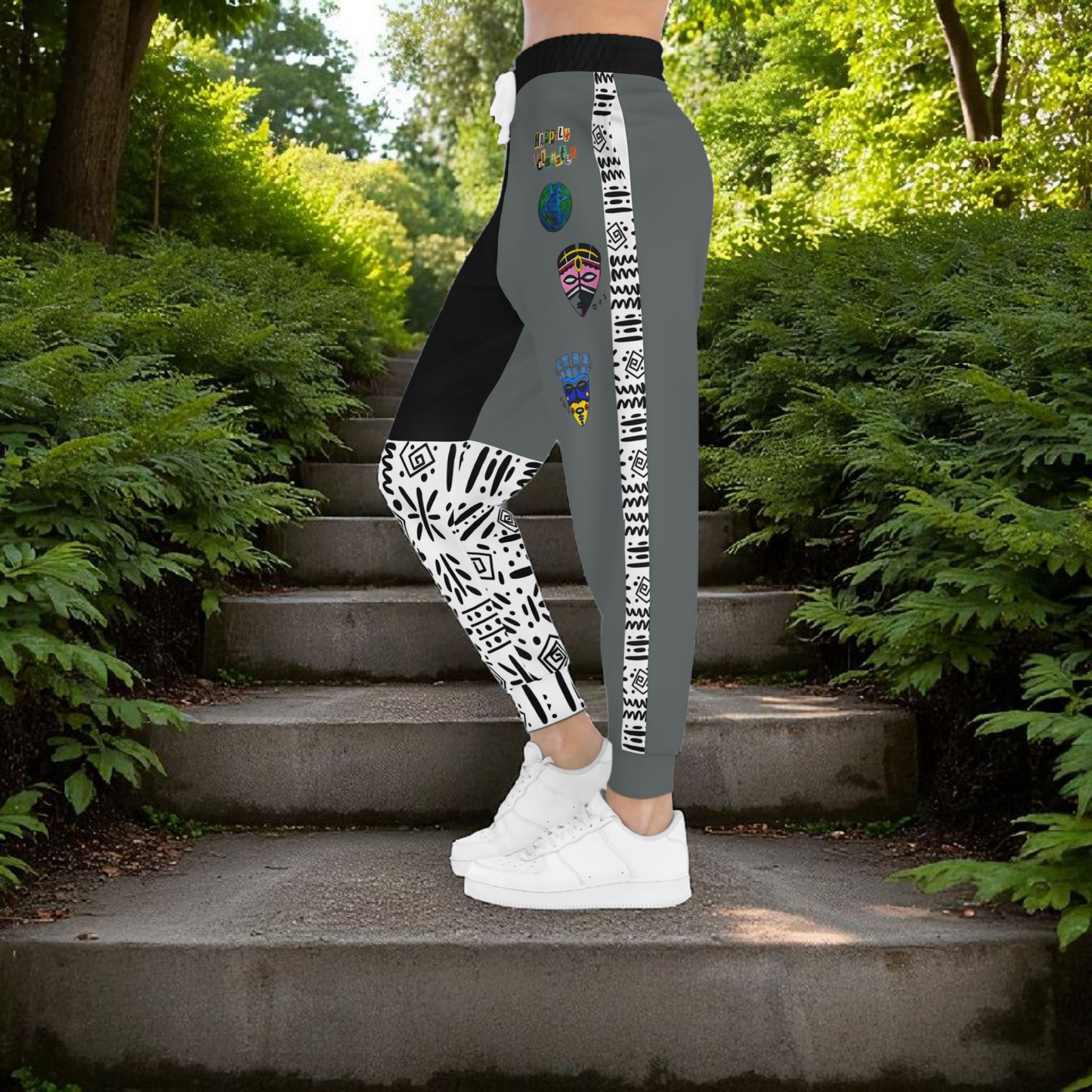 Handcrafted Afro Music Cartoon Art Athletic Joggers, Unisex Sweatpants, African Dance Jogging Pants