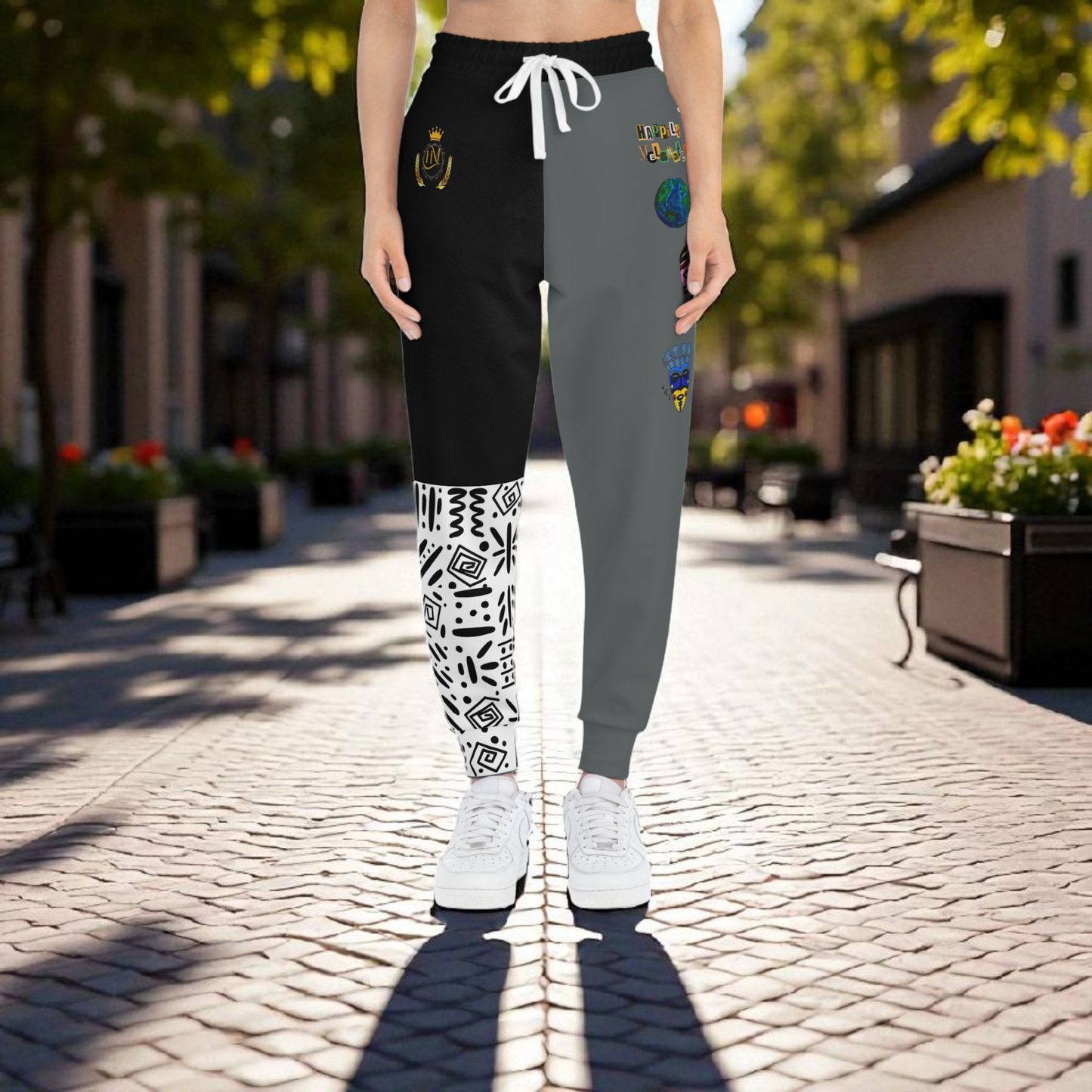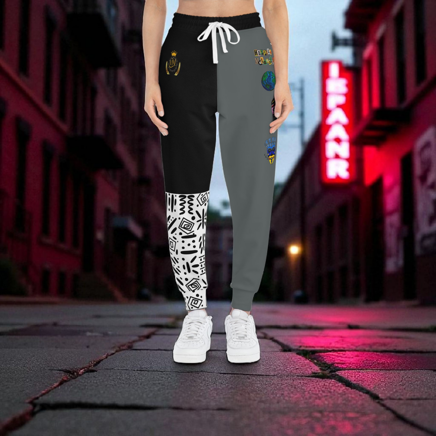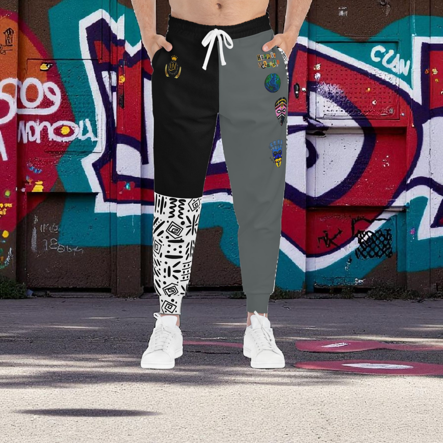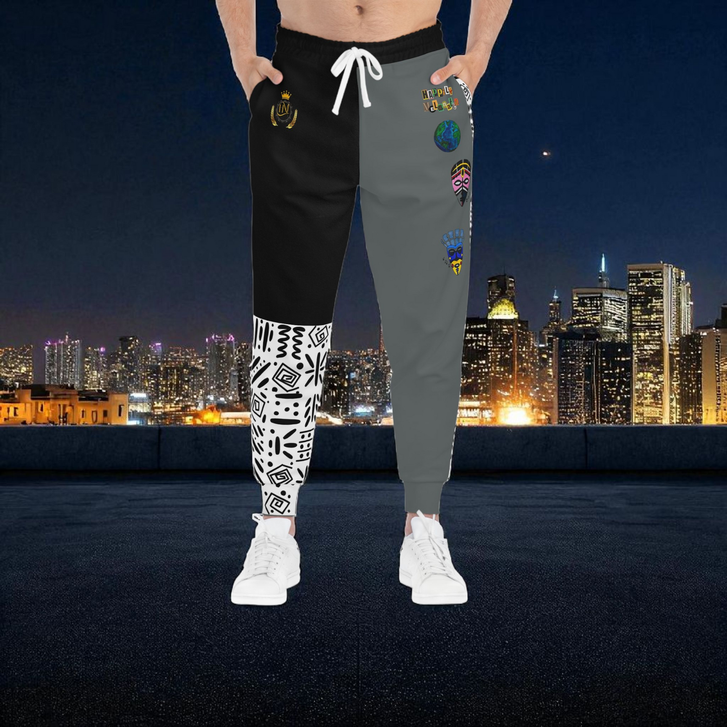 Handcrafted Afro Music Cartoon Art Athletic Joggers, Unisex Sweatpants, African Dance Jogging Pants
