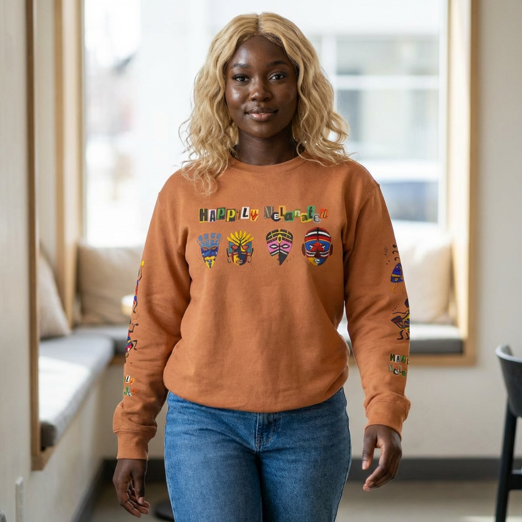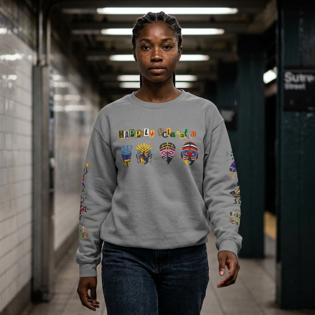 Handcrafted Afro Music Cartoon Graphic Unisex Lightweight Crewneck Sweatshirt