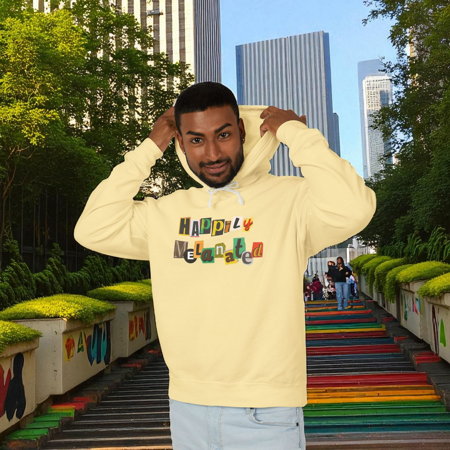 Handcrafted Ethnic Music Art on Unisex Lightweight Hoodie - Music Lover Gift